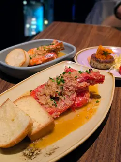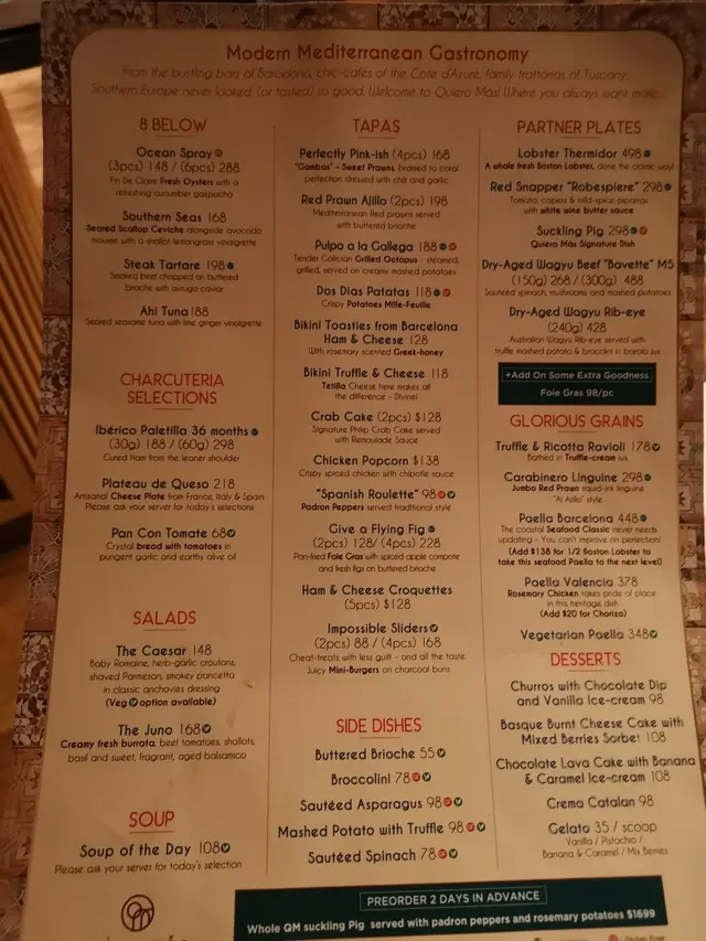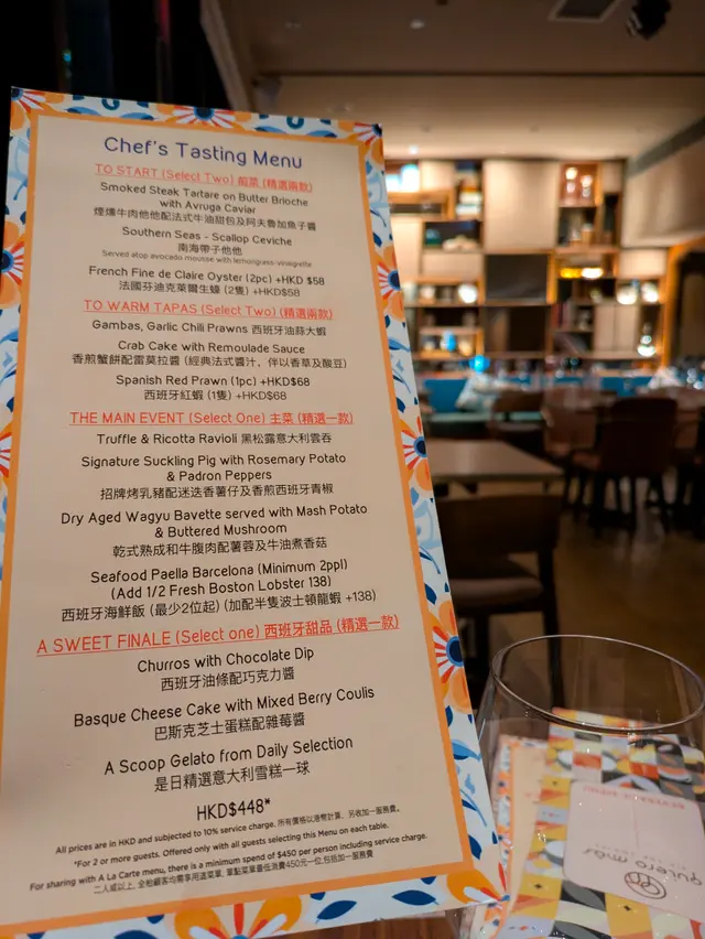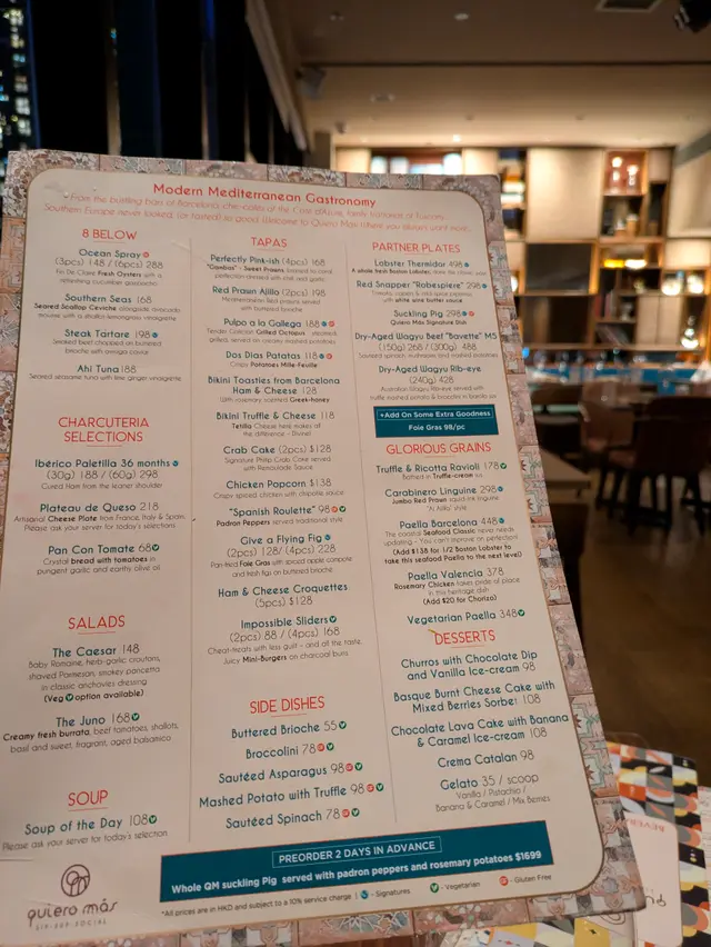 再訪Quiero Mas,今次上咗佢哋嘅天台望到成個香港夜景,餐牌上有大部分西班牙菜,店員細心講解不同菜式,而餐廳設有寬敞酒吧區域,同朋友一齊傾吓偈幾舒服🪄 Smoked Steak Tartare on Butter Brioche with Avruga Caviar煙燻牛肉他他滑到入口即化,配酥脆牛油甜包+爆汁魚子醬,煙香同鮮味一次過爆發🪄Scallop Ceviche, Avocado Mousse, Lemongrass Vinaigrette扇貝刺身沙律配牛油果慕斯,配上香茅香醋汁、綿密牛油果🥑質地細膩🪄Perfectly Pink-ish, Gambas - Garlic-Chilli Prawns蒜泥辣椒蝦上面鋪滿一層濃郁蒜香配料,外層蒜泥醬汁十分入味🪄 Crab Cake with Remoulade Sauce外脆內軟蟹餅,蟹肉滿載,雷莫拉醬酸香提味,正宗法式Main🪄 Signature Suckling Pig with Rosemary Potato & PadronPeppers招牌西班牙烤乳豬皮超脆,肉嫩多汁,配菜有迷迭香薯仔、青椒🫑🪄Dry Aged Wagyu Bavette with Mash Potato & Buttered Mushroom乾式熟成和牛腹肉,我叫咗五成熟,油香濃郁,咬落多汁,配滑溜薯蓉同牛油香菇🍄🟫好香🪄 Carabinero Linguine 298 s Jumbo Red Prawn squid-ink linguine ‘Al Ajillo“ style西班牙紅蝦意粉西班牙紅蝦好大隻,入口好鮮甜,意粉吸晒蝦汁好好味🪄Basque Burnt Cheese-Cake with RaspberryBrunch Set 甜品就是巴斯克風味焦糖乳酪蛋糕配紅莓醬, 巴斯克乳酪蛋糕表面呈現一層酥脆焦糖外殼,內裡濕潤柔軟🪄Coulis and Churros with Chocolate Dip呢個係我最鍾意食嘅西班牙甜品😋金黃酥脆西班牙油炸鬼,上少少砂糖再蘸上朱古力醬🪄Quiero Más Sangria (Finto)Brandy, Red Wine, Vermouth Rosso, Cointreau,Mixed Fruits, Berries西班牙傳統果汁酒,配上唔同嘅生果非常好飲高級西班牙餐廳慶祝小聚,Quiero Mas絕對一個好地方🚩Quiero Más中環威靈頓街2-8號威靈頓廣場M8820樓@quieromashk #addifoodie #addifoodie中環#foodie #hongkongfood #香港美食 #吃喝好去處 #週末好去處 #goodfood #周圍食 #情侶美食 #HKcouple #foodiecouple #餐廳推介 #香港好去處 #香港餐廳 #香港餐廳指南 #中環 #中環餐 #hkfoodie #香港探店 #西班牙菜 #QuieroMás #威靈頓廣場…查看更多