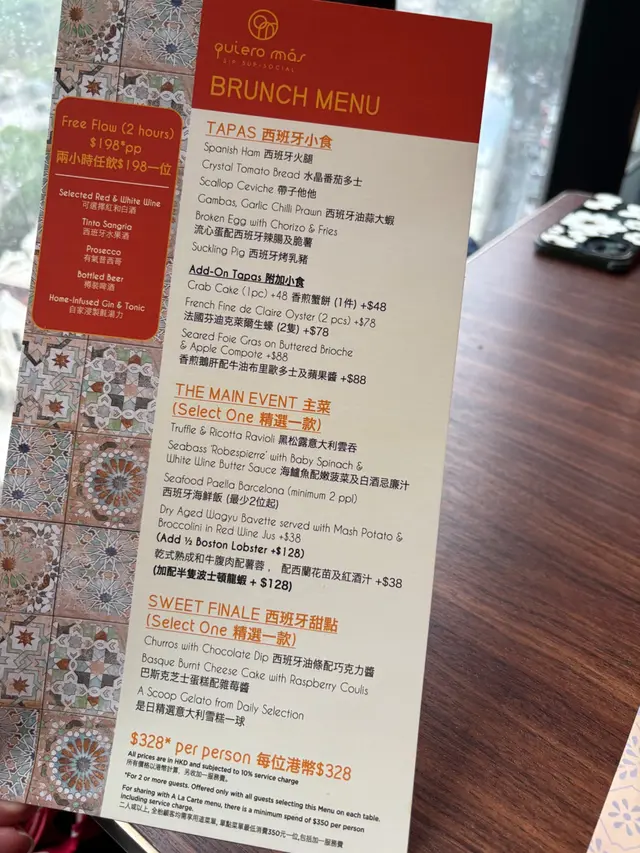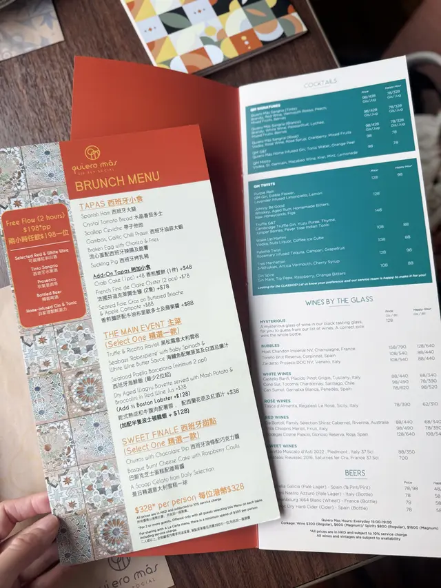 周末同男朋友去咗中環Quiero Más 歎下Weekend Brunch🍀,真心環境超正😍 餐廳位於威靈頓廣場20樓,環境寬敞又優雅,🥃酒吧區夠晒氣派,仲有現場樂手風琴🎹表演,可以點唱生日歌🎶氣氛超級熱鬧!好適合同朋友小聚、慶生🎂或者紀念日🎉 𓏸𑁍𓏸𓈒𓂃𓂃𓂃𓂃𓂃𓂃𓂃𓂃𓏸𓈒𑁍ᵂᴴᴬᵀ ᵂᴱ ᴼᴿᴰᴱᴿᴱᴰBrunch Menu $328/pp*另加一服務費Tapas❁ Spanish Ham & Cheese with Crystal Tomato Bread 經典西班牙火腿同芝士拼盤🧀,配上晶瑩剔透嘅番茄麵包🍅,酸酸甜甜好開胃,係配酒嘅最佳小食🥂❁ Scallop Ceviche 帶子他他配牛油果慕斯🥑,加上香茅醋汁,清新又爽口!帶子鮮甜,慕斯綿密,呢個認真食唔停口🤭❁ Garlic Chilli Prawn 蒜香撲鼻嘅大蝦🦐,蝦肉彈牙多汁,表面鋪滿濃郁蒜蓉醬汁,有啲似中式蒜蓉蒸蝦嘅風味,但又帶西班牙特色,入口超惹味😋❁ Broken Egg with Chorizo & Fries 流心蛋🍳配西班牙辣腸同香脆薯條🍟,蛋液同辣腸嘅濃郁味道混搭,食落超滿足!薯條吸晒蛋汁同辣腸香氣,簡直係邪惡嘅享受😈❁ Suckling Pig 西班牙菜點少得食乳豬🙃 烤乳豬皮脆肉嫩🐖,入口即化,完全唔膩!份量啱啱好,食一兩件已經好有滿足感,呢道菜真心推介👍🏻The Main Event ❁ Seafood Paella Barcelona(最少2位起)最愛經典西班牙海鮮炒飯,米飯粒粒分明,色澤金黃,配上大蜆、青口同大蝦🦐鮮味爆棚😍 大鐵鍋炮製,火候完美,帶出海鮮同米飯嘅濃郁香氣,真係全場都大部份選呢個Main🌟Sweet Finale❁ Basque Burnt Cheesecake with Raspberry 巴斯克芝士蛋糕🍰外層微焦香脆,內裡濕潤軟滑,配上酸甜紅莓醬,味道平衡得恰到好處,甜品控必試😚❁ Churros with Chocolate Dip 金黃酥脆嘅西班牙油炸鬼,點上濃郁朱古力醬🍫甜而不膩,每一口都係幸福感爆棚💕❁ Quiero Más Sangria (Blanco) $98❁ Quiero Más Sangria (Rose) $98兩款Sangria用上紅酒,同分別加入Brandy/Vodka同雜果調製,果香濃郁,清爽又易入口,真係perfect for brunch🍹✨Quiero Más 環境舒適又grand ,服務員又好細心,已經約定下次再來🥰💡提提大家如果想坐window seat, 真係預早book位啊,因為周末真係好爆滿架🤭Quiero Más𖠿 𖤣𖤥中環威靈頓街2-8號威靈頓廣場M88 20樓…查看更多