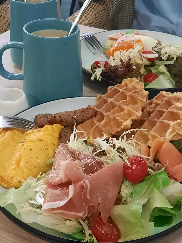 老公有折扣試吓呢間餐廳推介全日早餐All day breakfast及伯爵茶無花果Bagel早餐 嗰個格格餅好脆好新鮮原來係即做個滑蛋整得啱啱好有恰到好處唔會太實又唔會太生 仲有西班牙火腿夾、香草腸及煙三文魚好豐富職員介紹深煎奶茶真係好香 係台式茶底香味真係物有所值 而且職員好好禮貌下次會再幫襯…查看更多