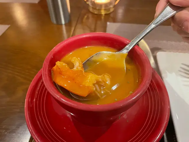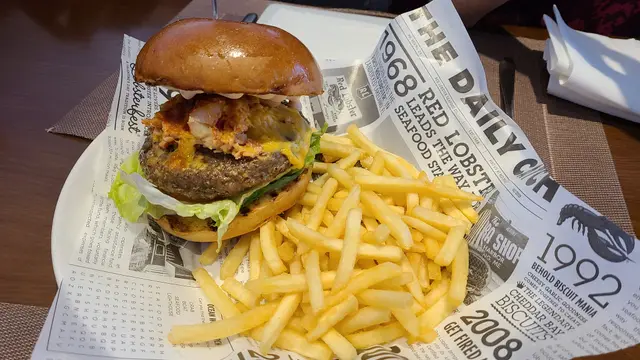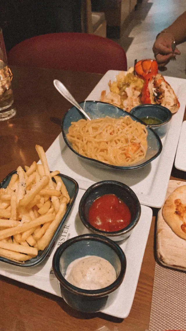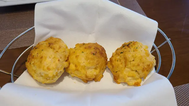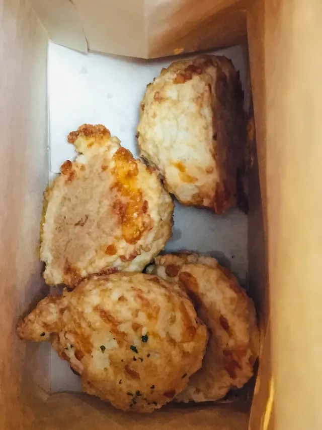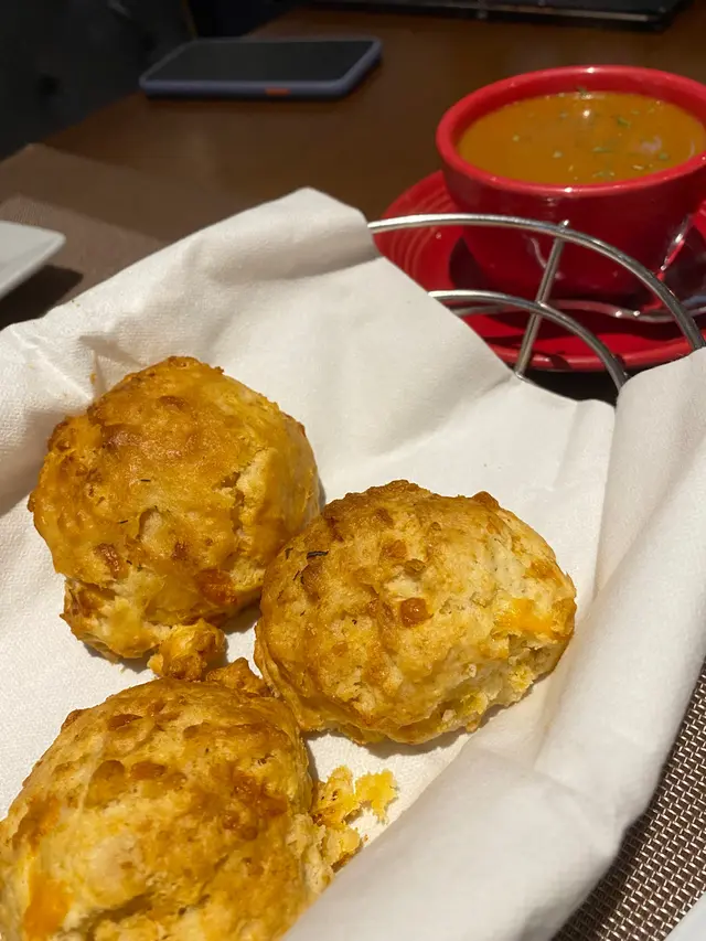 見到Red Loster都做外賣自取,全日供應,價錢仲好實惠,即刻買返屋企試吓。今日試咗佢嘅大蝦意粉配龍蝦醬,同埋佢出名嘅芝士鬆餅。意粉份量好大,麵條稍為乾身,大概有六、七粒中型嘅蝦肉,但係龍蝦醬份量太少,唔能夠每條意粉都沾滿醬,口感淡啲,感覺一般,冇想像中咁好味。芝士鬆餅就非常好食,以前食開甜嘅鬆餅,呢個鬆餅除咗加芝士之外似乎都加咗少少蔬菜,稍為喺焗爐烤下,就好鬆軟、好香,物有所值,可以encore。希望佢意粉醬汁俾多啲,外賣Menu加多啲唔同嘅菜式,下次可以試吓啲新嘢。…查看更多