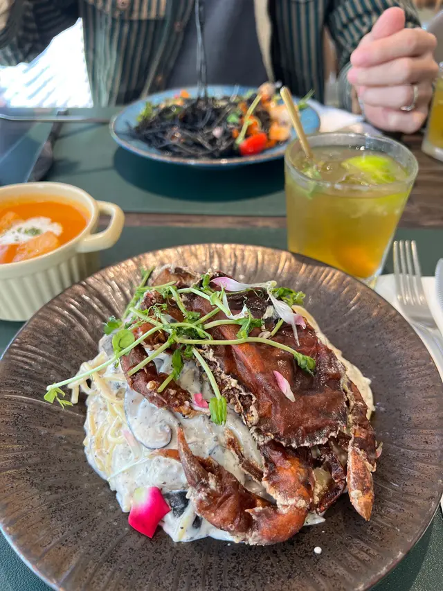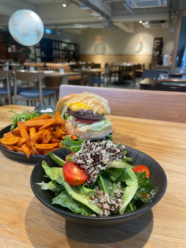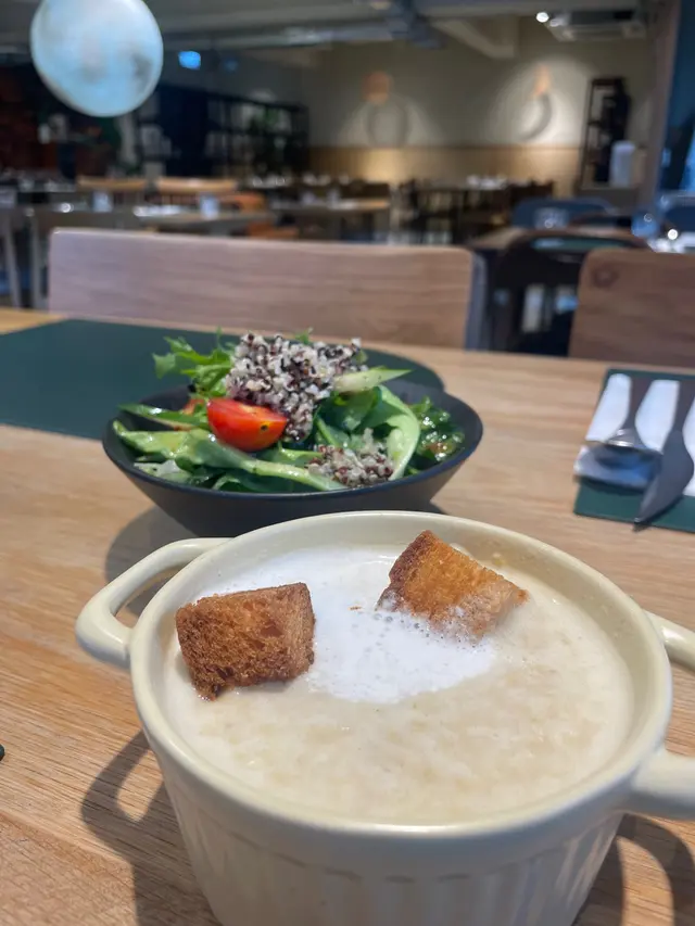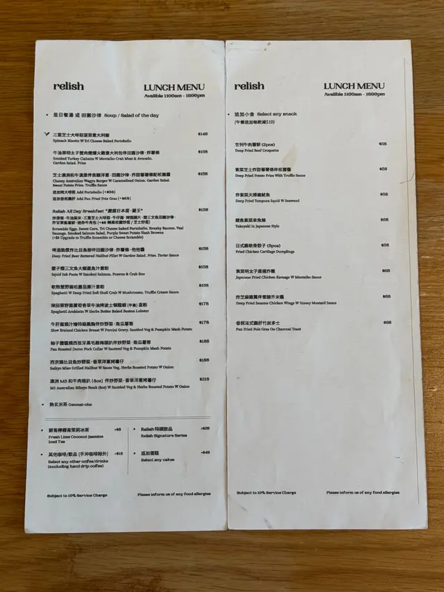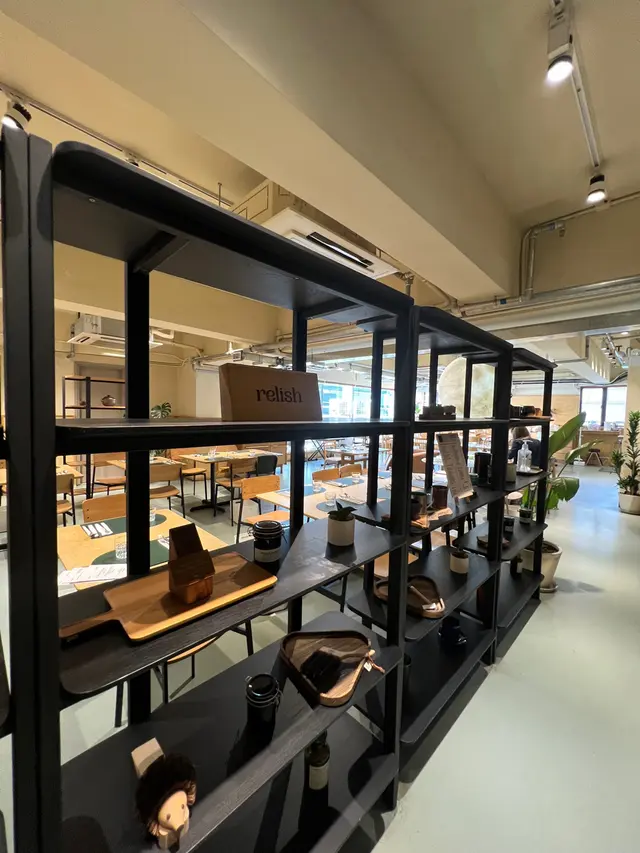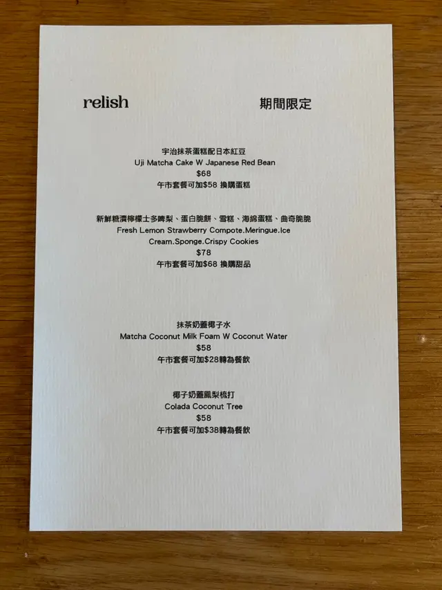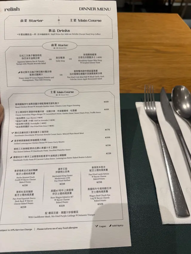 Relish 餐廳中間個超大「月亮燈」🌕 真係勁吸睛!四周用左木系傢俬同暖色牆身簡約又有格調柔和光線下成個空間即刻多咗份夢幻感~枱椅間距夠寬唔會逼逼狹狹仲有啡色梳化座可以好cozy慢慢食飯同傾偈我地試左晚市套餐有前菜、主食、飲品每項選擇都好豐富各適其適是日餐湯係甘筍忌廉湯上菜都幾有儀式感會喺我地面前慢慢倒甘筍湯入口香滑濃郁有少少奶香暖笠笠嘅開始幾舒服😌泰式青木瓜柚子神石柳大蝦沙律酸辣汁味道好醒胃!青木瓜爽脆柚子清新配上大蝦啖啖肉超彈牙🫶🏻整體酸中帶甜,好開胃~芝士澳洲和牛漢堡伴焦糖洋蔥呢個真係主角級🤩七成熟嘅澳洲和牛漢堡厚得黎入口仲有肉汁🤤咬落啖啖肉香!焦糖洋蔥帶出少少甜味配合濃香芝士真係一流~炸甜薯條又香又脆配埋松露醬香氣滿滿~完全唔油膩!香茅檸香雞胸配青咖喱意粉雞胸煎得好嫩滑唔乾柴~青咖喱味香濃微辣帶少少椰香味令到食雞胸感覺都唔寡估唔到觀塘區樓上有間咁有格調嘅地方價錢以套餐黎講中上但質素對得住價位下次約人喺觀塘café hopping 又多一個新地方…查看更多