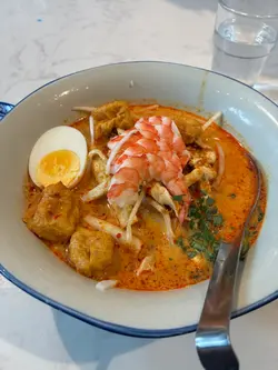今日係炒散最後一day,我超想食叻沙,所以直接係openrice check下附近邊度有得食,就揀咗呢間啦。鋪面好明亮,不過比較細, Menu菜式亦只有幾款,但係開放式廚房可以令到顧客清楚望到入面嘅運作,店員都好殷勤,雖然要講英文😂😂,最大問題係價錢令我眼凸,叫左叻沙加一份咖央,最後160蚊結帳🥲🥲🥲我嘅2個鐘人工,喊出黎。娘惹濃厚叻沙叻沙份量唔算多,如果我齋食麵應該唔夠飽,我最後係飲埋湯😅😅豆卜有鹹香,我覺得幾好食🤣🤣超惹味,食落唔止普通吸左湯嘅味道咁。湯底就正常操作,唔係椰奶味比較重嘅湯底,平衡得宜,係我都可以接受嘅辣味。魚條爽脆彈牙,蝦肉切半上,食落好新鮮,唔係用蝦仁🍤,仲有手撕雞款嘅雞絲,亦唔柴,水準做到。Kayak Toast唔知點解menu無寫toast,反而寫係牆嘅board度😅😅差d miss左無叫。toast一開四,疊埋上,打卡唔錯,醬都見到好厚,不過係wasabi色🤨,我唸過係唔係斑蘭,食落多士脆身嘅,但係醬就椰香味偏重,可能斑蘭唔夠多?我真係唔多覺陣味,得個顏色😅😅😅。以前食過更好食,呢個就被比下去了。鍾意佢地提供嘅水係檸檬水,食完濃味野,清下口腔好重要☺️☺️…查看更多