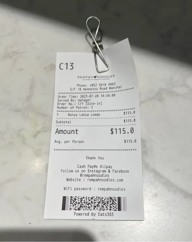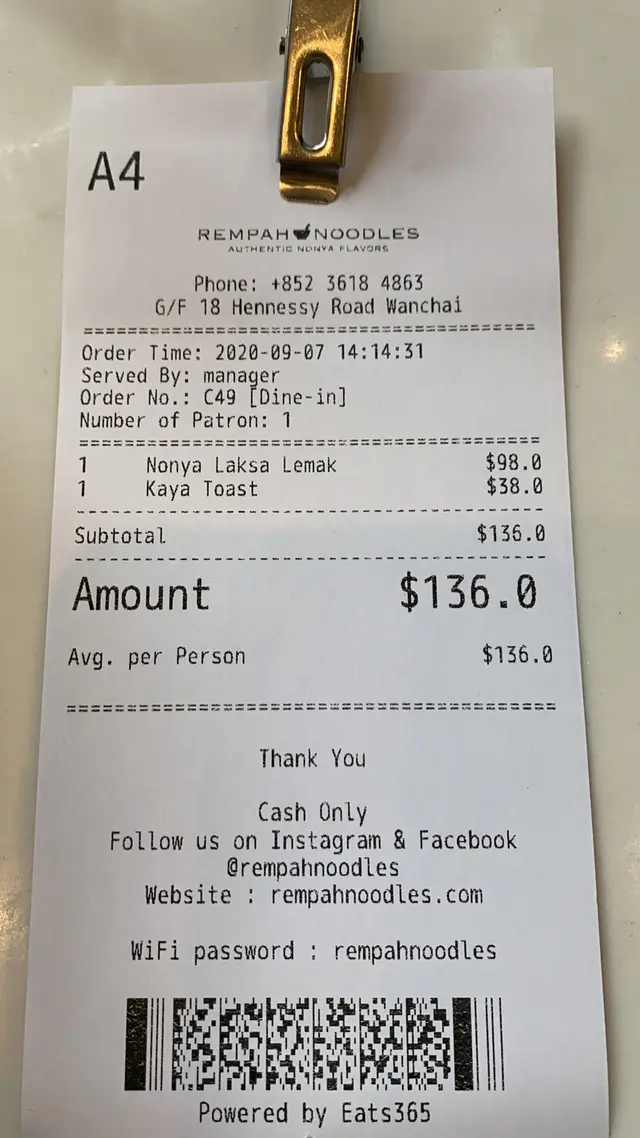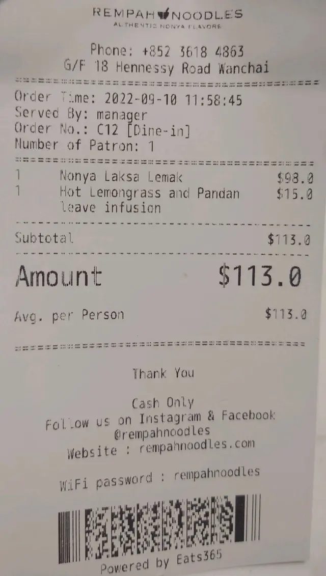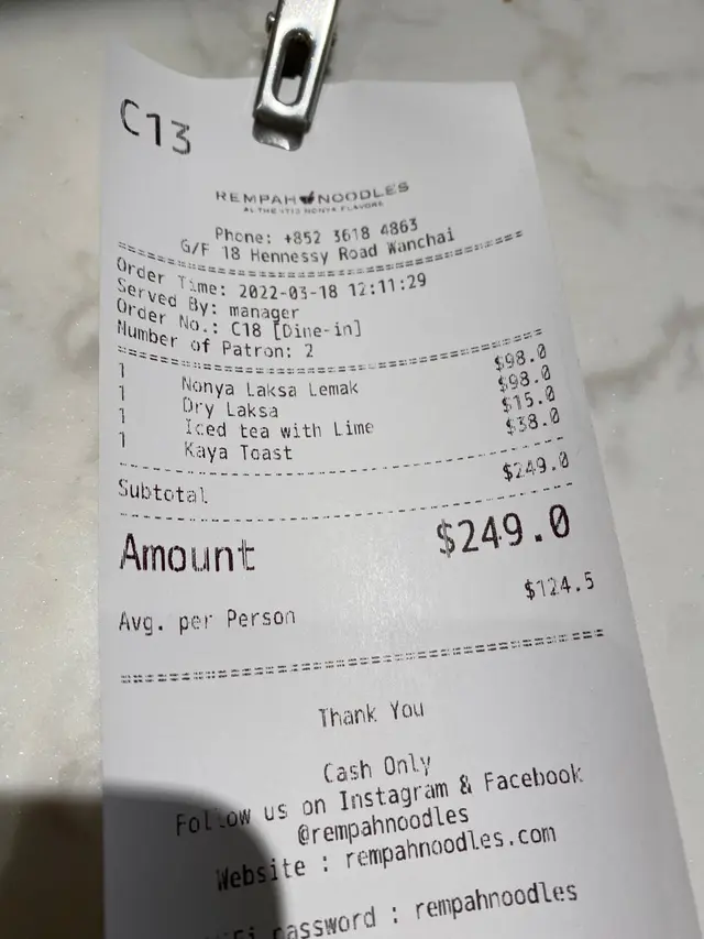 Rempah Noodles (灣仔) 網址: https://s.openrice.com/QrbS0dey400 地址: 香港灣仔軒尼詩道18號地舖 電話: +852 36184863