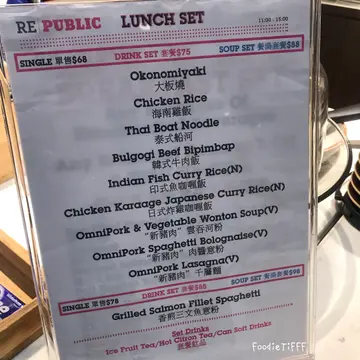 有一排冇來republic,轉左新餐牌有好多野都好想試。首推:新豬肉豆腐飯新豬肉係齋肉,像真度極高,配上麻婆豆腐嘅辣味十分惹味。有一排冇來republic,轉左新餐牌有好多野都好想試。西餐嘅選擇亦十分豐富,有兩款包類揀,份量亦很足,材料非常豐富。而闊條麵亦唔錯,幾有𡁻口。不過新豬肉咖哩肉餅飯肉餅太燶,味道太咸,有待改善。