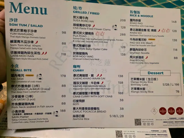 Restoran SAYA (大角咀) 網上訂座享低至9折優惠兼賺Rice Dollars 網址: https://s.openrice.com/QrbS0db8B00 地址: 香港大角咀嘉善街18號利奧坊地下G701號舖 電話: +852 95558452