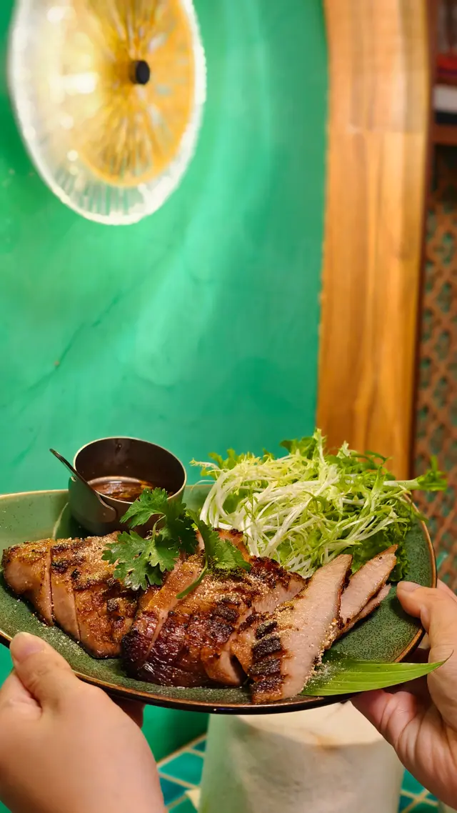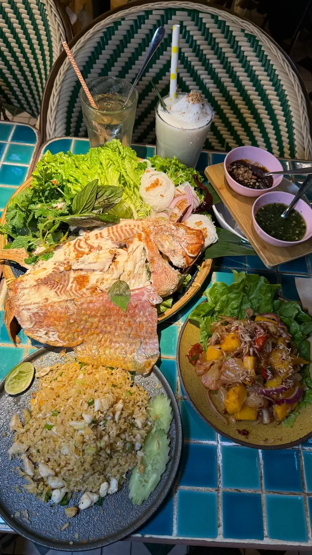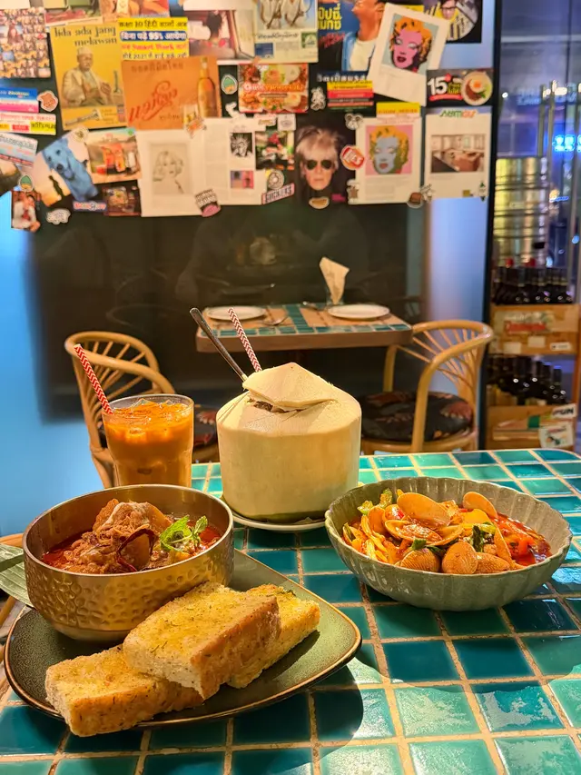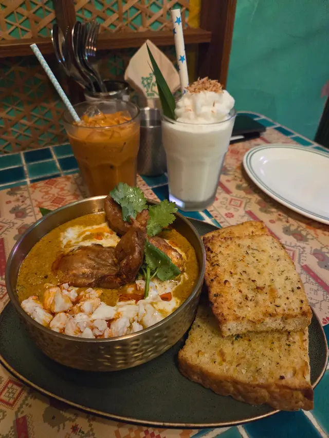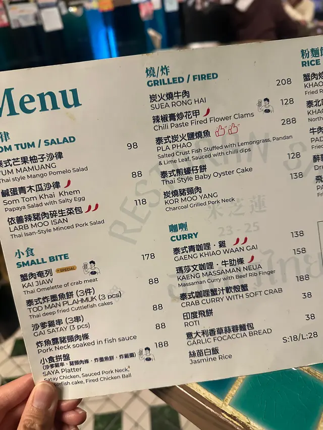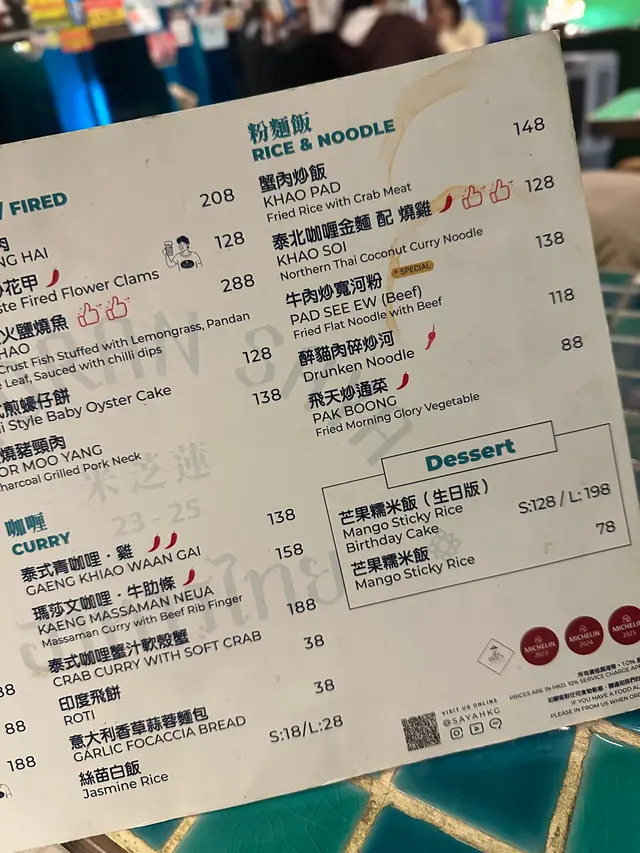 今日黎到位於大角咀既哩間泰國菜餐廳。餐廳環境充滿東南亞風情🌴湖水藍瓷磚配上綠色牆壁,加埋藤木椅及泰式風情既佈置,真係好靚好適合打卡📸️而且餐廳連續三年榮獲米芝蓮必比登推介,質素有保證!餐牌~🥗鹹蛋青木瓜沙律青木瓜沙律酸爽開胃,辣度十足有後勁,灑上甘香的鹹蛋碎,味道新穎獨特。🔥炭燒豬頸肉豬頸肉經炭火香烤,帶有獨特的燻烤香氣,肉質爽彈,配上濃郁的泰式酸辣汁,香辣過癮。🍛泰式咖喱汁軟殼蟹咖喱汁底醇香,軟殼蟹炸得酥香鬆化,蒜香濃郁既蒜蓉包蘸上濃濃的咖喱,好夾。🫓印度飛餅飛餅外皮微脆,同泰式咖喱係絕配,每次叫咖喱都一定要嗌。🍗泰北咖喱金麵配燒雞哩個係泰北獨有嘅菜式,見到就諗返起之前去清邁嘅日子,金麵有柔滑和香脆兩款,配上濃郁的咖喱醬汁,搭配外皮焦香、肉質嫩滑既燒雞。🥭🎂芒果糯米飯(生日版)今次既重點,就係生日版既芒果糯米飯蛋糕,好靚好啱影相打卡📸而且非常有份量,芒果清甜多汁,糯米飯軟糯黏韌,至愛可以無限添加既香濃幼滑椰漿,食完真係非常滿足🥰…查看更多