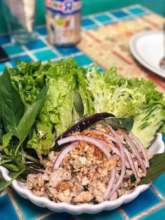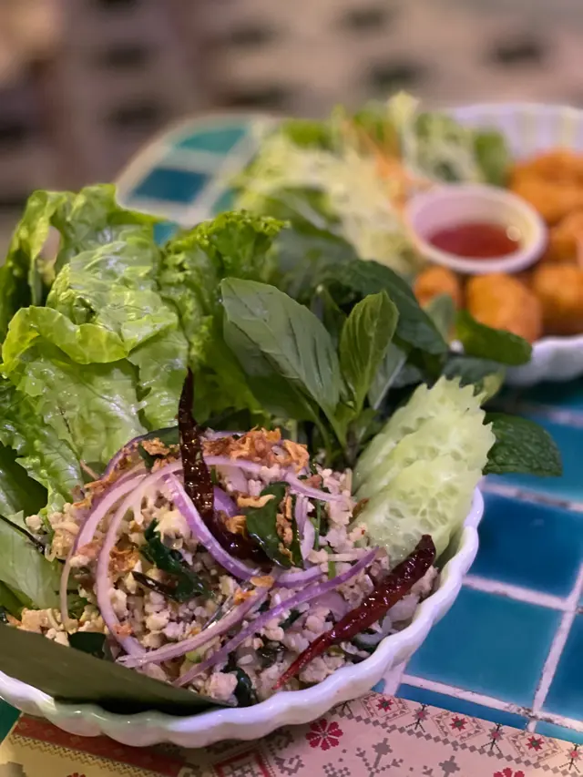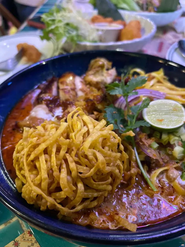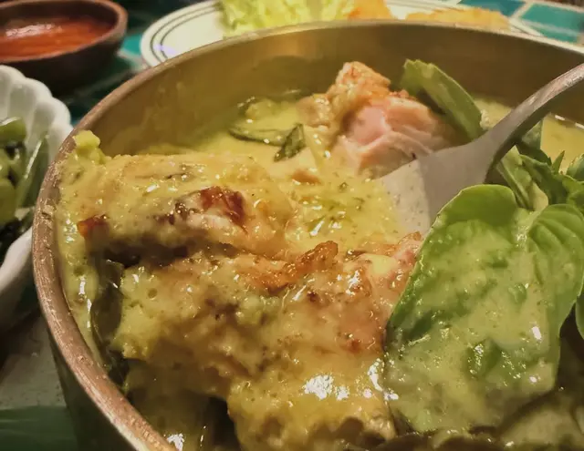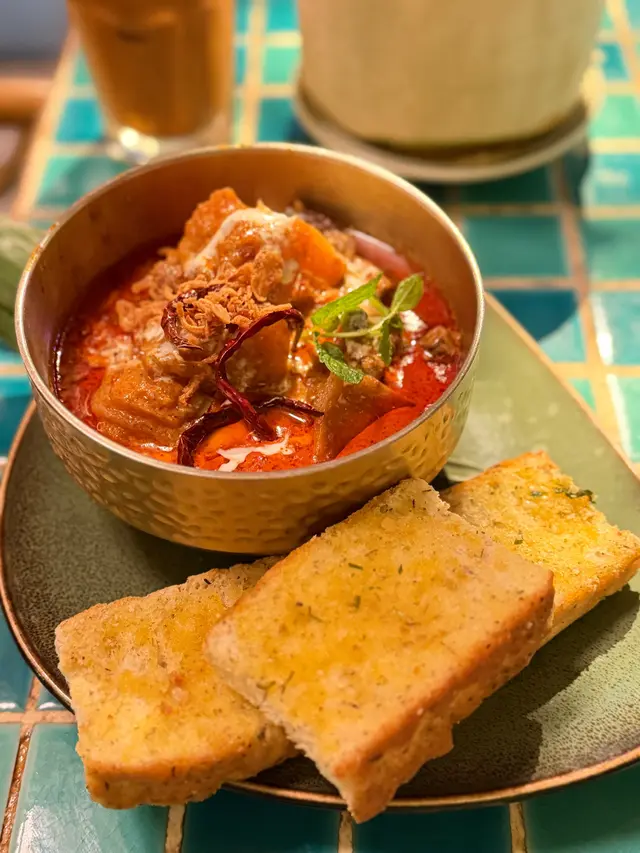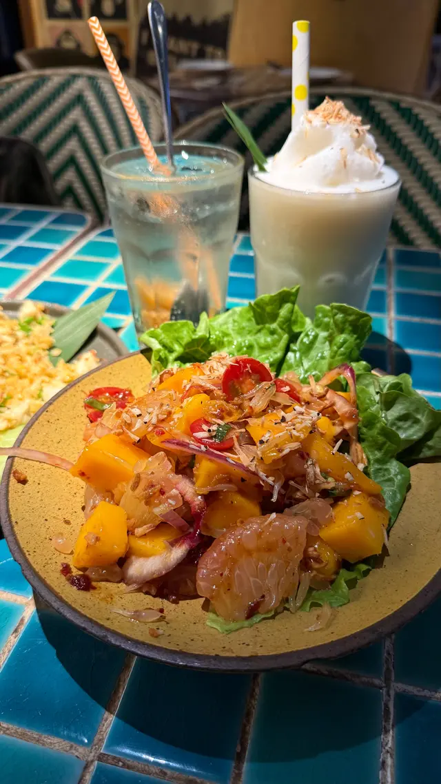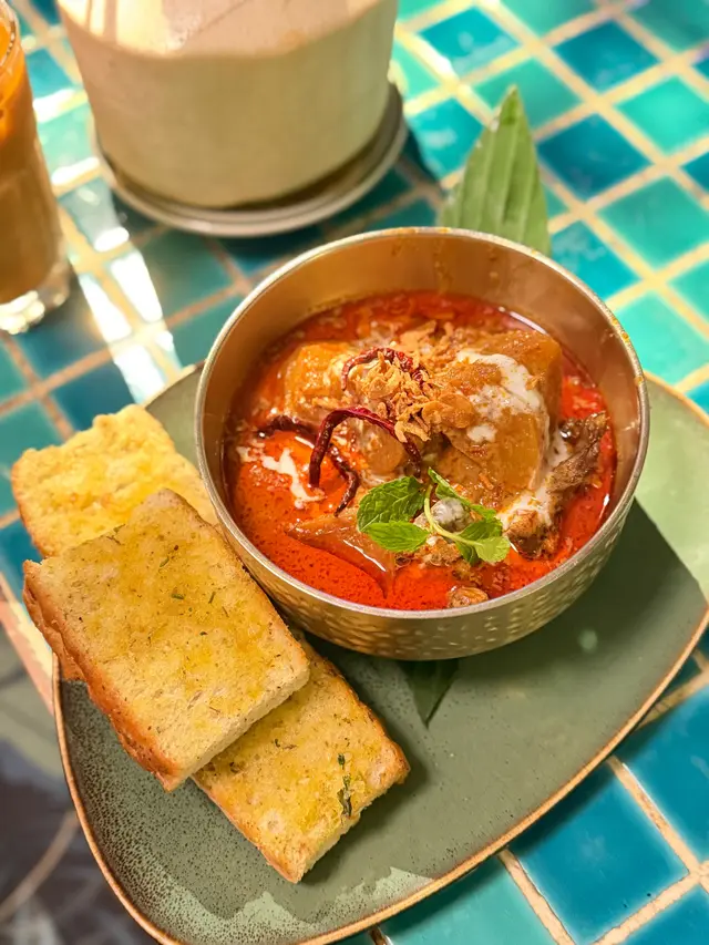 今日黎到位於大角咀既哩間泰國菜餐廳。餐廳環境充滿東南亞風情🌴湖水藍瓷磚配上綠色牆壁,加埋藤木椅及泰式風情既佈置,真係好靚好適合打卡📸️而且餐廳連續三年榮獲米芝蓮必比登推介,質素有保證!餐牌~🥗鹹蛋青木瓜沙律青木瓜沙律酸爽開胃,辣度十足有後勁,灑上甘香的鹹蛋碎,味道新穎獨特。🔥炭燒豬頸肉豬頸肉經炭火香烤,帶有獨特的燻烤香氣,肉質爽彈,配上濃郁的泰式酸辣汁,香辣過癮。🍛泰式咖喱汁軟殼蟹咖喱汁底醇香,軟殼蟹炸得酥香鬆化,蒜香濃郁既蒜蓉包蘸上濃濃的咖喱,好夾。🫓印度飛餅飛餅外皮微脆,同泰式咖喱係絕配,每次叫咖喱都一定要嗌。🍗泰北咖喱金麵配燒雞哩個係泰北獨有嘅菜式,見到就諗返起之前去清邁嘅日子,金麵有柔滑和香脆兩款,配上濃郁的咖喱醬汁,搭配外皮焦香、肉質嫩滑既燒雞。🥭🎂芒果糯米飯(生日版)今次既重點,就係生日版既芒果糯米飯蛋糕,好靚好啱影相打卡📸而且非常有份量,芒果清甜多汁,糯米飯軟糯黏韌,至愛可以無限添加既香濃幼滑椰漿,食完真係非常滿足🥰…查看更多