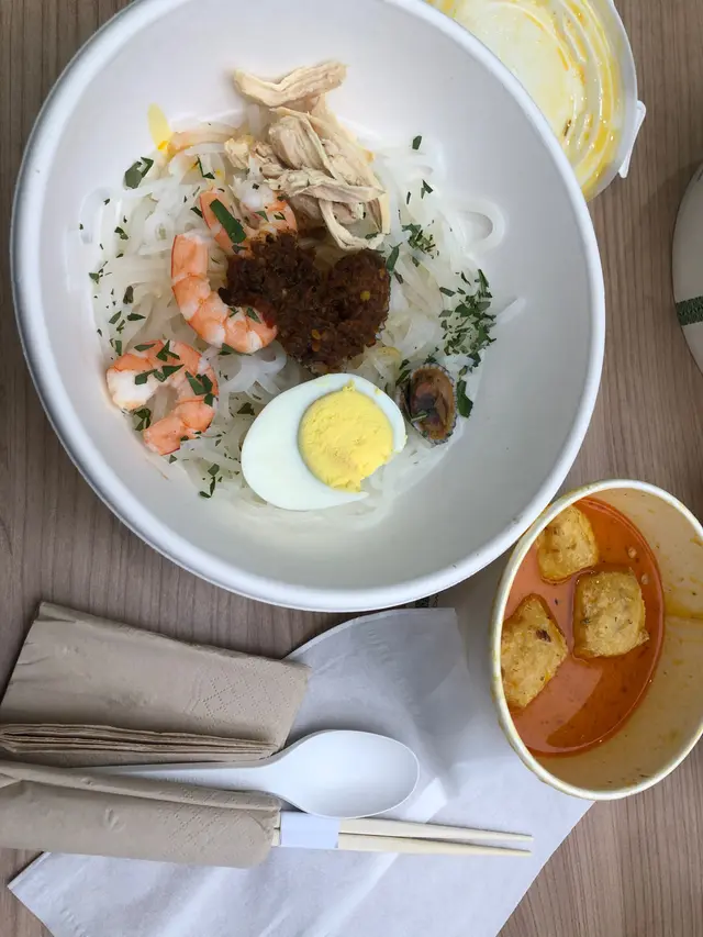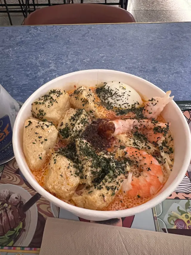今次黎到怡和大廈既food court,餐廳林立,好多選擇,有中餐、日餐、西式、印度式等等,食客都好多元化,有不同國藉的食客,完全體現出香港是一個國際大都會。今次來到這間食店主要是同事極力推介,他說喇沙湯底味道濃郁,是必點的菜式!首先,跟平常的food court一樣,雖自行走到所屬餐廳先點餐,侍應是外國人需以英語點餐。娘惹喇沙,同事果然沒有介紹錯,湯底十分濃郁,配料亦十分多,分別有大蝦、雞蛋、豆腐卜、雞絲!慳價錢確實有點貴,午餐加上一杯凍咖啡盛惠158大元🥲…查看更多