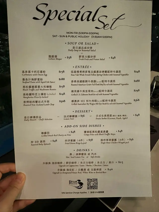 早幾日同Friend去咗寵物友善餐廳「RIVA 灣 Bar & Grill」🐶🐱坐喺窗邊位置更可飽覽維港壯麗海景🌊餐廳外面有位置可以俾客人帶寵物一齊食嘢或外賣🥡除咗北角分店,馬灣亦有分店💁🏻♀️而3pm-530pm係Tea time時間段🌤️夜晚餐廳仲有一個打卡位🌙餐廳招牌會倒影係橋上🌉.⚠️此餐廳收取10%服務費💰.香烤美國穀飼牛側腹(12oz)配時令蔬菜🥩套餐$288💰牛側腹烤至外微焦香內粉嫩😍牛味濃郁,肉質有咬口😆超多肉汁😋點上醬汁另一風味👍🏻旁邊有烤蒜🧄西蘭花、番茄🍅茄子🍆同粟米芯🌽.墨魚汁海鮮意粉🍝套餐$188💰有蝦🦐魷魚🦑青口🐚墨魚汁微辣帶陣陣蒜香🌶️好味道🤤.是日餐湯🥣套餐包含💰椰菜花湯🥦.沙律🥗套餐包含💰.杏仁片草莓乳酪蛋糕🍰套餐包含💰蛋糕質感輕盈😌配上草莓果香🍓.雜莓黑森林蛋糕🧁套餐包含💰朱古力蛋糕加上酸甜雜莓醬🍫🍒🫐好清新💦.Lychee Paradise🍹跟餐$58💰由荔枝汁、青檸汁🍋🟩湯力水調製而成🫧.Summer Cup🍸單點$42💰由檸檬水加石榴汁、薄荷葉調製而成🍋🌿…查看更多