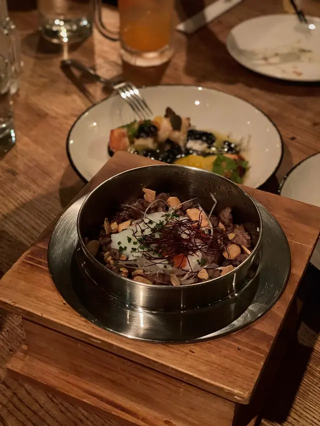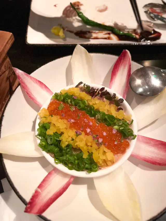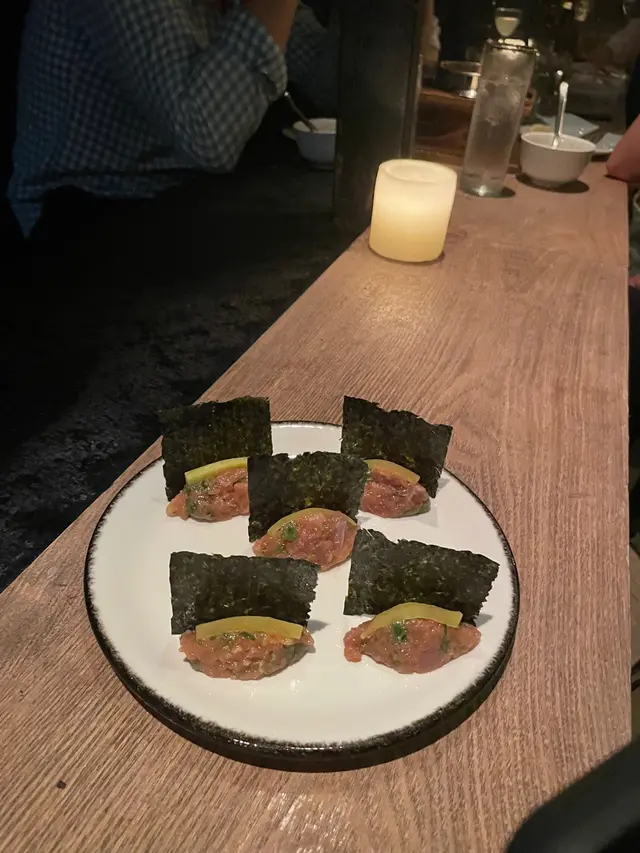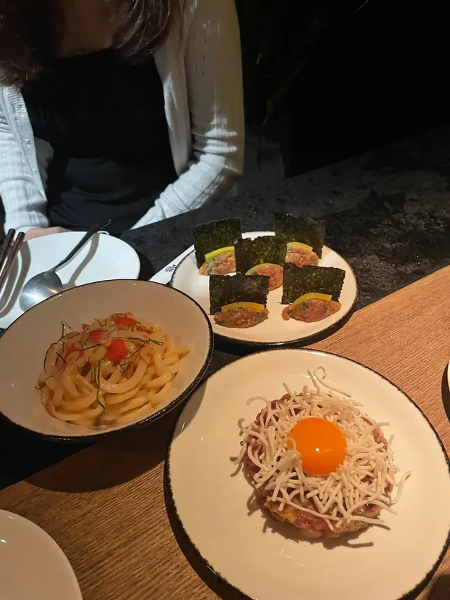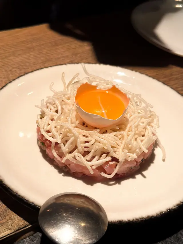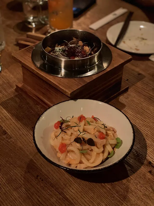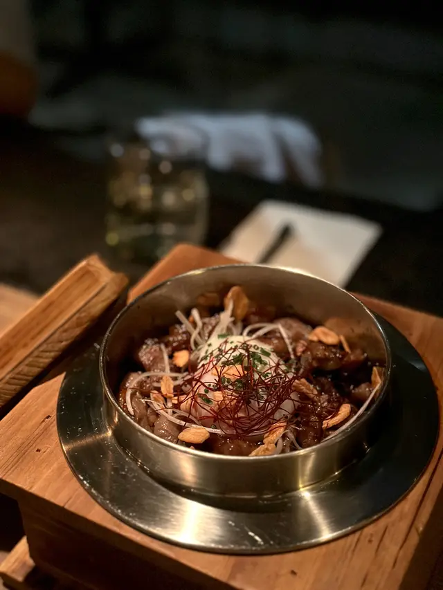 we love finding hidden gems, don’t we? roji is literally tucked away in a dark alley in lkf and gives off laid-back izakaya vibes. we liked everything we ordered w favs being the wagyu dishes- both yakiniku and pot riceonto desserts, skillet pancake had this crispy brown buttery crust and pillowy-soft interior that went perfectly with hojicha ice cream. SO BOMBBB!!in our tums-🦪scallops, yuzu dashi, celtuce 🐮yakiniku wagyu, wasabi, teriyaki sauce, shimeji🍳wagyu box- wagyu beef, onsen egg, shichimi, garlic chips🐙octopus, squid ink potato, rakkyo pickles, citrus dressing🍜udon, mentaiko, ginger, garlic chips🥞skillet pancake- marshmallow, white chocolate, hojicha ice cream🍓strawberry shochu, fig, jasmine tea 🍋yuzu, shiso, green tea🍇white grapes, shochu, mint🍶sake (on the house)price: ~$450 pprating: 8.5/10revisit? yesss…查看更多