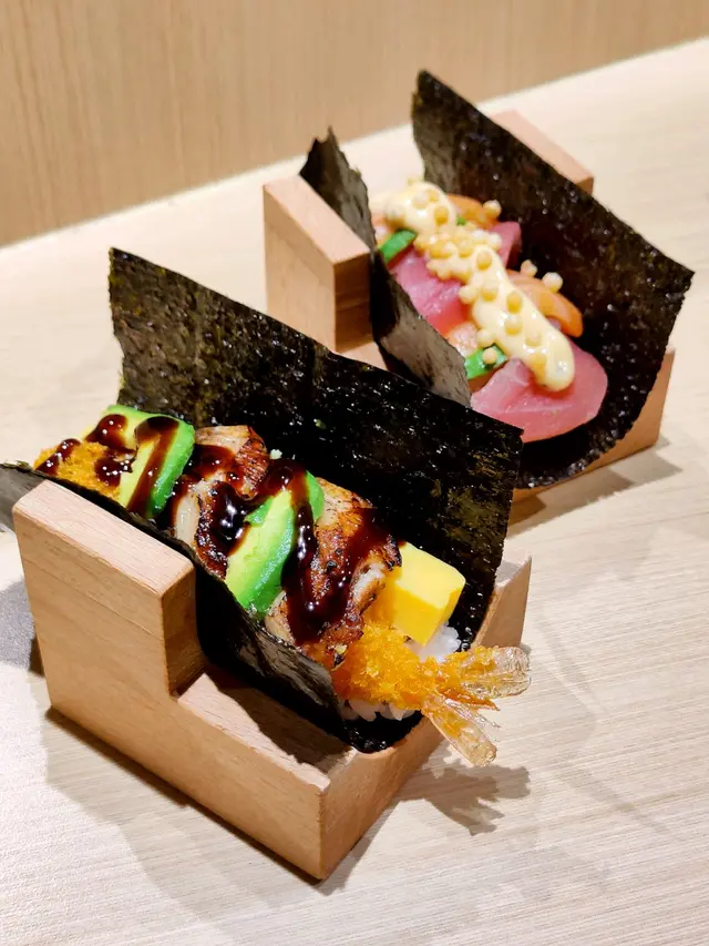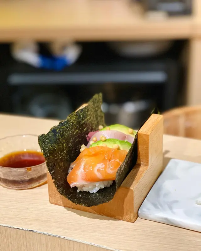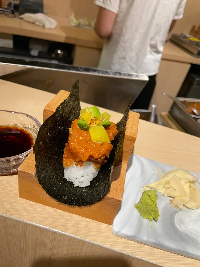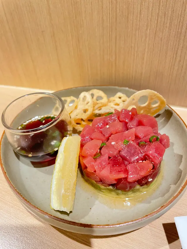 跟朋友衝入SOHO新開嘅餐廳,頭盤就係麵豉湯,暖笠笠嘅,順滑嘅湯入口就覺得暖笠笠。炸蓮藕片嘅脆度仲可以,炸得金黃色嘅蓮藕片,咬落去脆卜卜,配枝豆蓉,鮮香又滑滑。Beef Tempura Gyoza就真係俾個掂嘅評價,牛肉餡口感紮實,佐上Tsune Mayo沙律醬,個味道勁正點,啲皮一啖咬落去超有滿足感。Chicken skin Gyoza就真係好出彩,原來雞皮可以咁脆口,唔會油膩,搭上自家調配嘅蒜香醬油,味道層次分明。而Minced Toro classic hand roll,依個真係勁搶鏡,一手卷飽滿嘅拖羅蓉,新鮮到喺口裡化開,個飽滿真係過癮。Rainbow roll則可以話係視覺同味覺嘅雙重享受,三文魚、吞拿魚同牛油果樣樣鮮美,唔愛怎樣得喎!今次嘅小試牛刀大成功,店內格局都舒服,坐低就可以幾個鐘唔覺得攰。下次見仲要試多幾款卷呀,超期待!🍣🍲🌈…查看更多