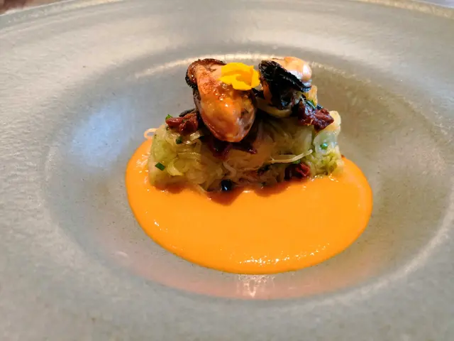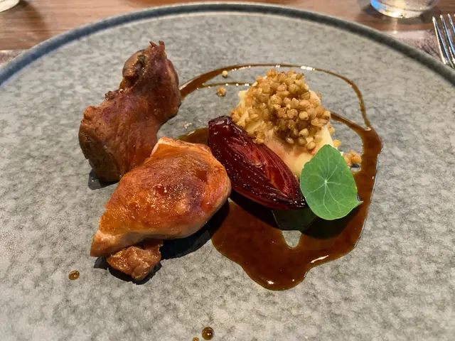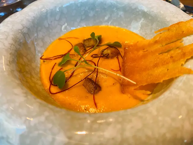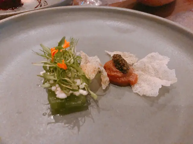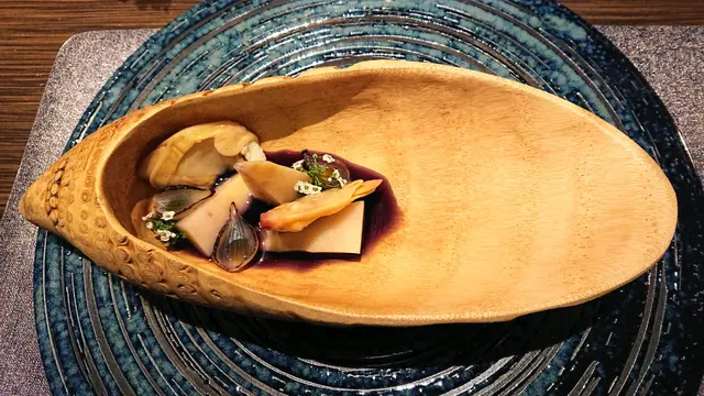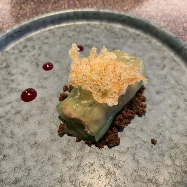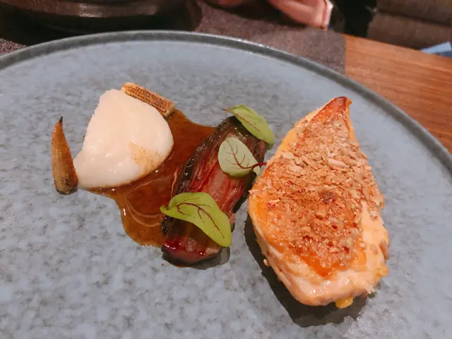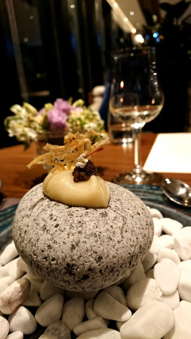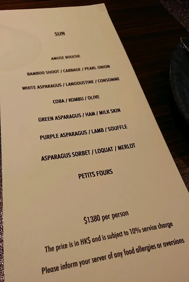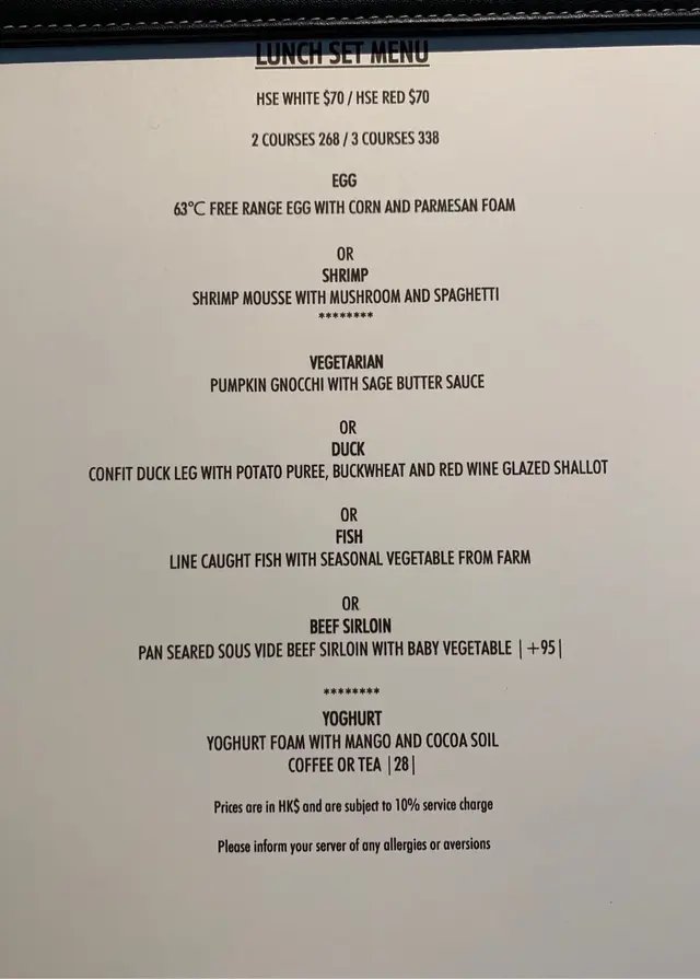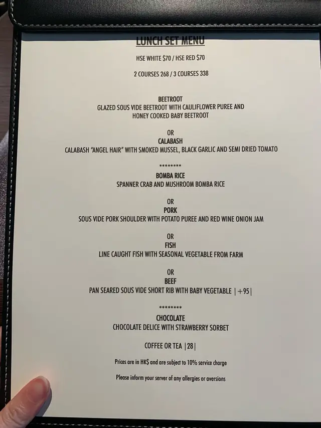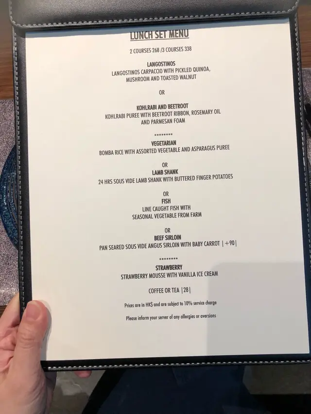 Trying this new French fusion cuisine the firs time with no expectation. It is very quiet ok Thursday, maybe because lots of people celebrating Chinese Lunar New Year soon. They have lunch sets for 2 price: 2-courses: $268 and 3-courses for $338. Very reasonable! Amuse bouche is pumpkin puree, ok! Tried the appetizer: bamboo shoots with geoduck. Very Thai style but I never liked those local geoduck, so not interesting to me. We selected seabass and lamb to share for main courses. Love the lamb, very tender and moist. Didn’t try the chocolate dessert. One disappointment is that there is no petite four. I guess maybe due to cheaper price, so it is not included.…查看更多