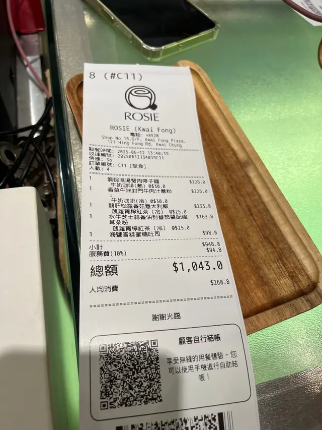 Rosie (葵芳) 網址: https://s.openrice.com/QrbS0CviB00 地址: 香港葵芳興芳路177號葵芳廣場地下18號舖 電話: +852 55015100