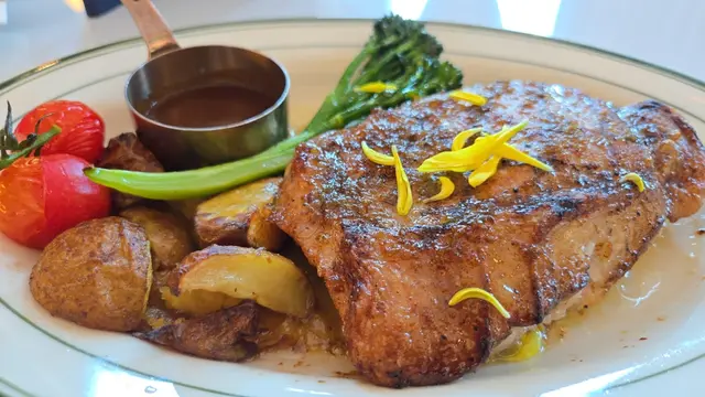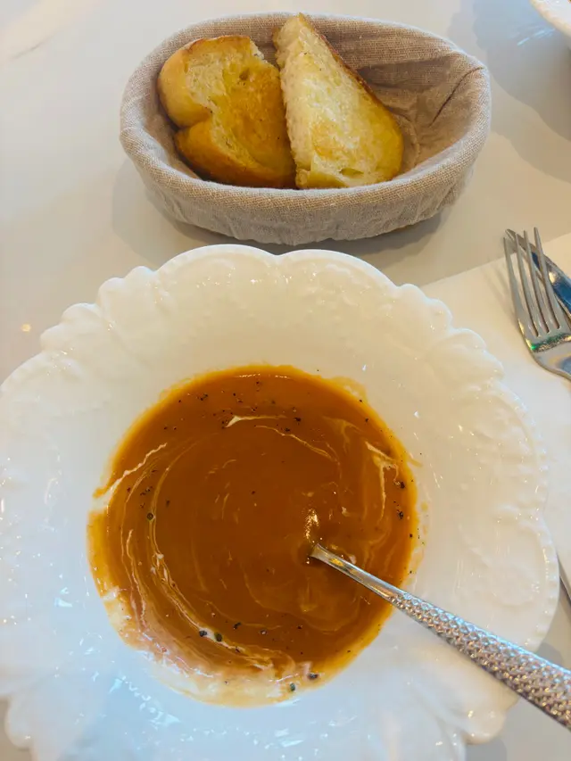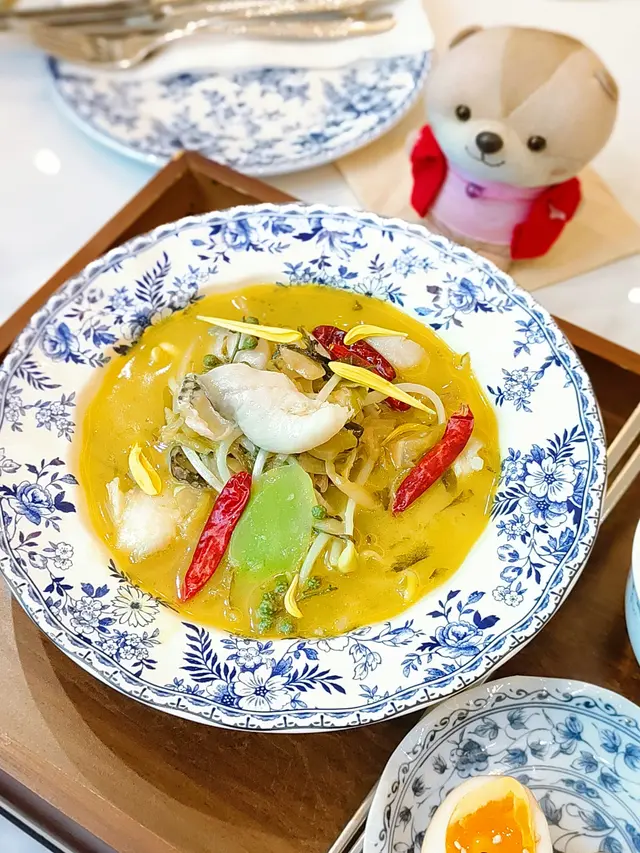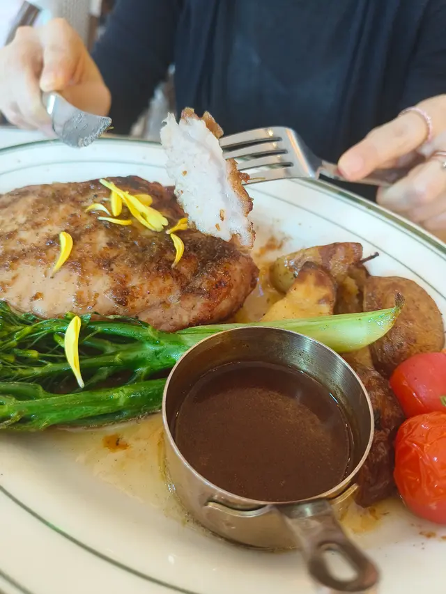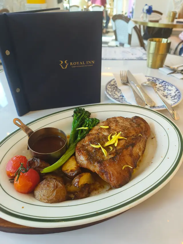 ROYAL INN 推出了融合料理,在西式環境下吃中餐別有一番風味欵。我們去了尖沙咀分店,就在The One一樓近窗的位置。落地大玻璃挺光猛欵,這個環境打卡很可以,在變了藍色主調,給人一種不一樣的感覺😆。-午餐時間以套餐為主的,包餐湯及$28或以下飲品,檸檬茶、檸檬水和奶茶也可選。當天的餐湯是椰菜花湯,平常較少飲到的湯欵,綿密的質感挺香滑,味道清甜又健康。-酸菜黑海鱸魚定食 HKD$118定食包括餐湯小食及珍珠白飯,熱辣辣送來味道真香😆。用黑海鱸魚做骨頭較少的,啖啖肉的質感鮮嫰。金湯味道開胃惹味,酸菜爽脆做得入味,拌飯一起吃可以的。小食是溏心蛋,蛋味香濃,是半流心的狀態。-桂花蜜汁燒豬肉眼配薯菜 HKD$138肉眼扒賣相吸引份量十足,肉質厚身但不會感到太韌,還帶點肉汁感覺可以的,用桂花蜜汁燒出來多了份香甜味欵😆。醬汁味道香濃,拌肉肉一起吃味道更香。-…查看更多