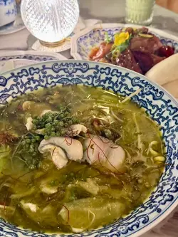 約咗朋友嚟食飯見到呢間餐廳真係好有特色💙 歐陸式嘅宮廷風中間仲有個大噴水池真係好氣派⛲️水晶燈配上電視播住黑白嘅經典電影Breakfast at Tiffany's 真係有種華麗又優雅既感覺🖤 食物同樣好有水準約會黎打卡絕對一流📷⭐️ Kale Caesar Salad 🥗 經典嘅凱撒沙律加上羽衣甘藍更加健康🥬 調味好清新又開胃同時唔會有草青味💚⭐️ Lobster Bisque 🦞龍蝦湯入口好Creamy🧡 滿滿嘅龍蝦鮮味濃郁好有法式既感覺🇫🇷⭐️ Jumbo King Prawn Handmade Pappardelle 🦐大蝦份量豐富燒得啱啱好保持住肉質嘅鮮甜🌊 手工做嘅闊麵果然特別有口感掛汁能力一流好有驚喜🍝⭐️ Grilled Iberico Pork Rack 🥩黑毛豬鞍嘅火候控制得好🐷一切落去保持軟嫩嘅口感🤩 配上肉桂蘋果醬嘅點綴襯托返肉香🍎 配菜既Mashed Potato非常幼滑帶牛油香🥔⭐️ Basque Cheesecake 🍰看似簡單嘅巴斯克芝士蛋糕🇪🇸同時做到焦香嘅感覺同埋中間細膩嘅口感🧁甜度恰到好處係好優雅既感覺…查看更多