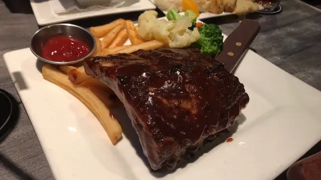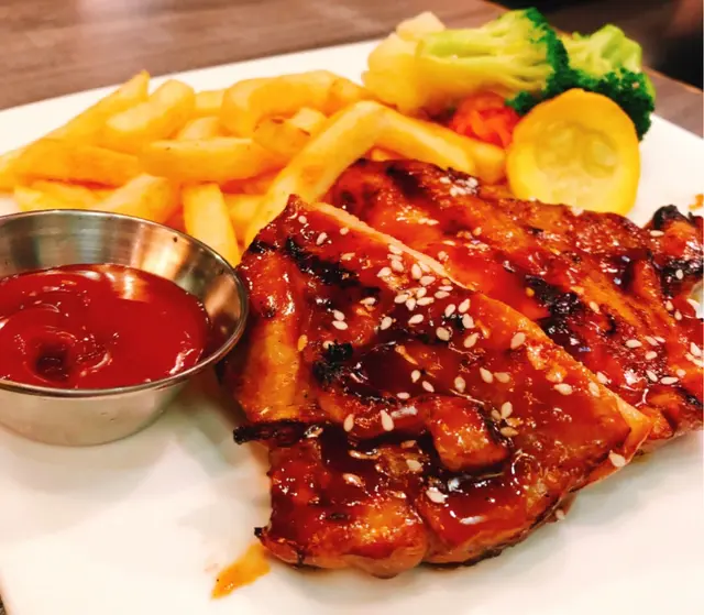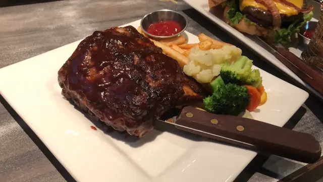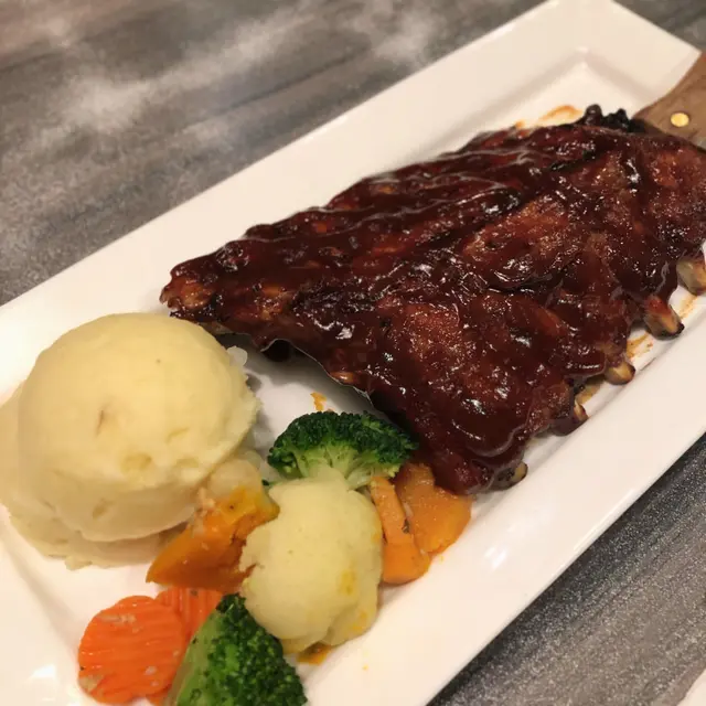 平時都有食開呢間餐廳有一段時間冇食之後再嚟返覺得呢度嘅餐牌進步左抵食咗!今次嚟到多咗午餐嘅餐牌價錢大約100左右有埋沙律吧餐湯嘢飲都算唔話得 露比燒排骨 $138ribs 大概有七舊仔左右 份量5算特別多 但因為有薯條同埋沙律吧如果幾個人食叫一個呢啲叫一個其他餐其實都會夠飽 除咗份量之外其實味道唔錯幾好食 排骨咬落去非常琳 個人對呢個肉質都非常滿意經典露比漢堡$108平時食開嘅漢堡包比算係中上嘅質素 肉汁多芝士溶分量亦都OK 加埋薯條其實都幾大份一個人食一定夠飽仲有沙律吧其他唔需要擔心唔夠飽嘅問題每次嚟到一定會加$30叫一個小食炸雞條 $30呢個小食對於平時有運動需要蛋白質嘅人來講可能係一個好消息! 炸雞條炸到入邊嘅雞柳好juicy一啲都唔硬! 加埋honey mustard 真係冇得唔叫用黎點薯條都要啦總括嚟講呢間鋪頭有咗午餐餐單之後變得抵食左好多 食物質素亦都維持到 推介!查看更多
