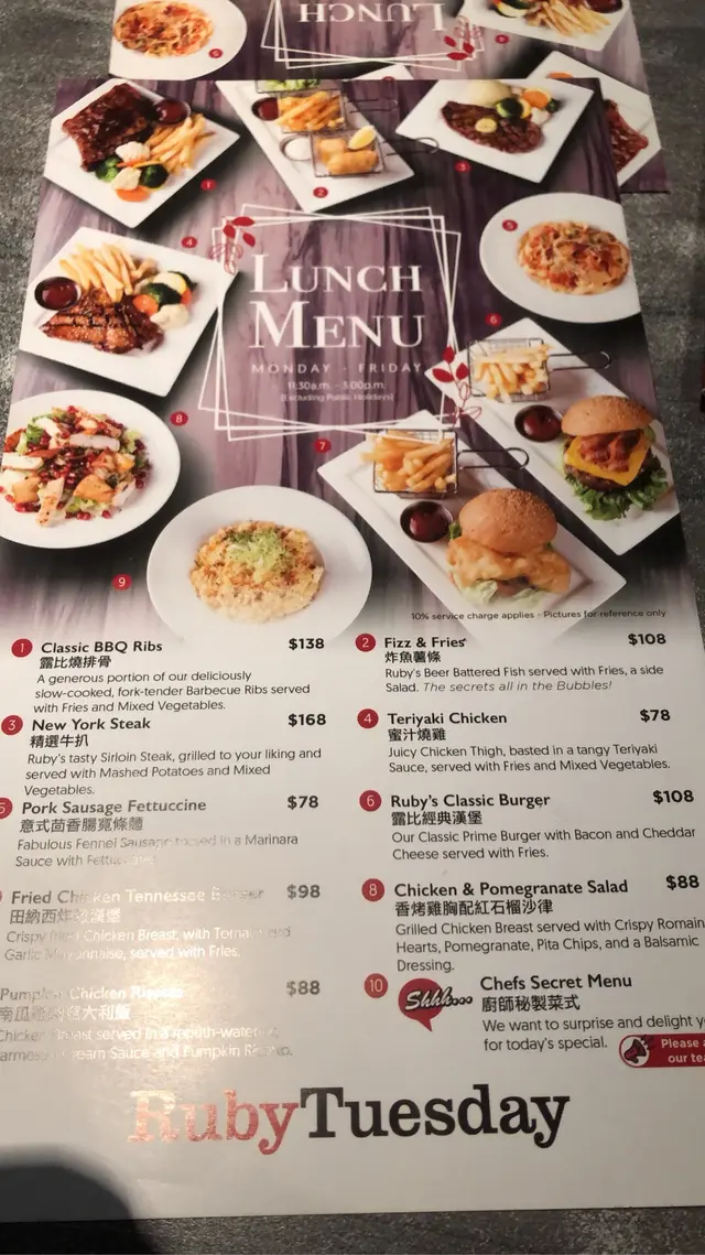 喺呢間伏店用餐不快經歷令到從來唔寫食評嘅我都忍唔住要寫返篇。😡😡😡😡食物一般不在話下,份量唔多,啲意粉同茶餐廳有得比,嘢飲更可怕,全部都係藥水特調,成杯擺返係度。🤮其實用會員價都唔平,但完全得唔到應有嘅服務質素!😡員工上菜ping ping pang pang,成碟野飛去你面前咁,我哋已經無出聲,啲餐具差啲俾佢整曬落地,全部好似唔想做,當d食客係咩野。😦經理管理員工不善不突止,態度仲惡劣過d細嘅,唔怪之得晚巿都得小貓兩三隻。咁多間RubyTuesday依間真係數一數二差!永久blacklist! 總括嚟講: 冇!下!次! 查看更多
