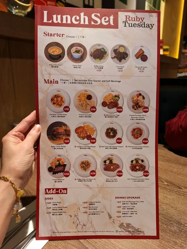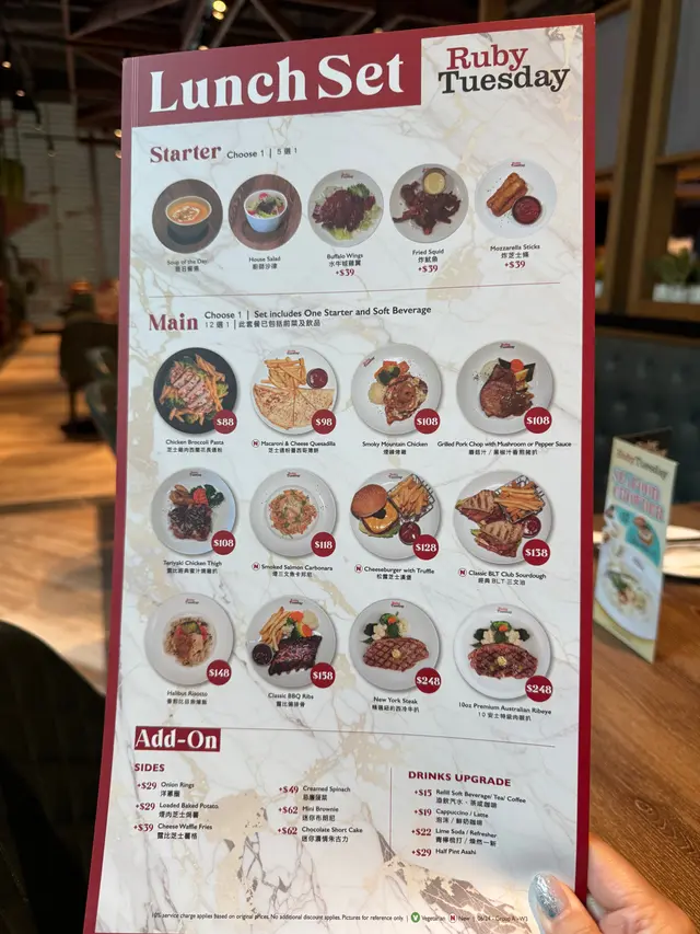 今日黎到環境裝修超級棒嘅Ruby Tuesday❤️ 餐廳採用經典嘅西式設計裝橫,感覺型格又時尙👍 柔和舒適嘅燈光更添氣氛🤭 約會聚餐一流😎 前菜㨂咗牛油果吞拿魚玉米片😆 脆卜卜嘅玉米片上,淋滿惹味嘅芥末醬,食落辛香刺激😘 粒粒吞拿魚油香甘美,牛油果軟滑濃厚,配玉米片出奇地合拍👍 主食先選了一份開胃又清新嘅龍蝦沙律😋 沙律勁大盤份量十足👍 頂端以鮮嫩無比嘅龍蝦肉作點綴,底下堆滿清爽美味嘅嘅沙律菜和果粒😘 食落嚼感十足😚 香煎鴨肝三文魚籽墨魚汁意大利飯一樣令人有驚喜🤗 鴨肝散發著迷人嘅焦香,食落油香滿溢,馥郁回甘❤️ 意大利飯口味非常地道,質感濃稠富嚼感😎 配搭鹹鮮嘅三文魚籽共食,更添美味😋 甜品㨂咗西餐必備嘅提拉米蘇😋 口感軟滑細膩,味道集咖啡、可可、奶油嘅滋味於一身,味道層次豐富,甜而不膩✅ …查看更多