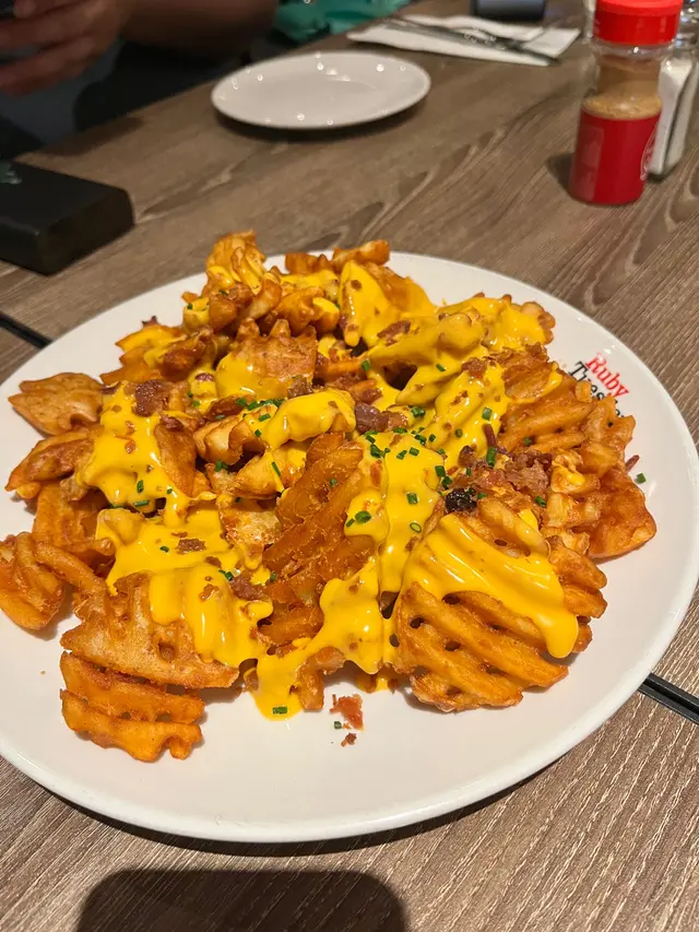 這裡環境舒適好坐,一些員工態度好,會慢慢解釋會員制度,本身諗住用K11個coupon先入去,點知入到去都忍唔住申請埋個會員,因為我見佢啲嘢食都幾抵食,好大份,其實一大班人過嚟就會好好多,兩個人叫三碟已經食唔晒,叫唔到甜品,因為已經太飽。Ruby Tuesday的一碟野食的份量係足夠兩至三人分享。玉米片口感脆身,醬濃稠度適中,不過辣度較低。旁邊的醬提供了額外的層次。漢堡方面,經典芝士漢堡的牛肉排煎得略乾,肉汁不足。麵包經過烘烤,外層微脆有濃厚牛油味。薯條是標準的粗切款式,外脆內軟,不過調味偏淡。漢堡的表現屬於中等水平,沒有明顯缺點但也缺乏驚喜。但整體水準都符合連鎖餐廳的預期,適合想快速解決一餐的人。…查看更多