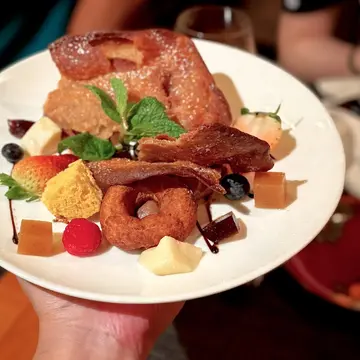 西班牙小酒館「Rustico」位於荔枝角地標D2 Place ,由來自西班牙籍總廚「Javier Perez Freire 」主理,多年的主廚經驗,他曾在米芝蓮一星餐廳磨練廚藝及遊歷世界學習各國料理,對西班牙菜的文化瞭如指掌🇪🇸藉著慶祝西班牙十月國慶日,總廚特意設計「西班牙北部朝聖之路美食巡禮」菜單,精心挑選了來自西班牙北部共8個地區不同美食,令大家可以味蕾上朝聖,味道和食材配合充滿驚喜😋✨ 煙燻三文魚他他、火腿果凍、焗蘋果泡沫、虹鱒子|口感和味道充滿鮮味,非常美味的開胃菜✨烤西班牙血腸、梅子醬、香脆洋蔥|血腸味道非常濃郁,口感帶點煙靭,醬汁帶酸香,剛好平衡血腸的濃烈感✨拉里奧哈特色燉鱈魚、烤焗馬鈴薯|鱈魚皮脆肉嫩,魚肉肉質細滑,配上味道濃香的醬汁增添風味,配上香脆的烤焗馬鈴薯,西班牙傳統風味✨Rubia Gallega風乾熟成肉酥皮、羊奶芝士、西班牙藍番茄、芝麻菜、焦糖洋蔥|全晚最喜歡,賣相已經一百分,酥皮香脆包住豐富餡料,風乾火腿和羊奶芝士味道絕配,口感層次都好豐富✨ 烤白蘆筍、油封西班牙甜椒、魚子荷蘭醬、水煮蛋碎|蘆筍相當Juicy,配上脆煙肉和醬汁,鹹香好味,配返一杯白酒就最啱✨西班牙流心蛋伴碎西班牙肉腸、德國馬鈴薯、新鮮黑松露、蛋黃醬|所有食材需要拌勻,一口馬鈴薯,充斥着肉腸碎蛋黃味道,外脆內軟好滋味✨香烤黑毛豬豬腩、鷹嘴豆醬、葡萄牙海鮮汁、烤高麗菜、辣肉腸|黑毛豬豬腩皮脆肉嫩,滿滿油脂香,醬汁和蔬菜能中和膩感✨ DESSERT PLATTER 甜品薈萃西班牙油炸圈餅、豬耳甜麵包、咖啡啫喱、栗子蓉、杏仁海綿蛋糕、榅桲糕、西班牙迭地亞牛奶芝士、米洛蛋糕、朱古力醬,一次過能品嚐從未試過的甜品,非常幸福…查看更多