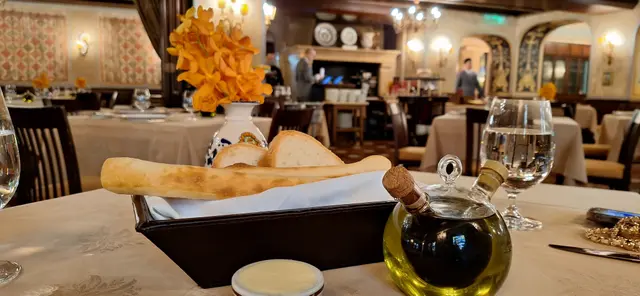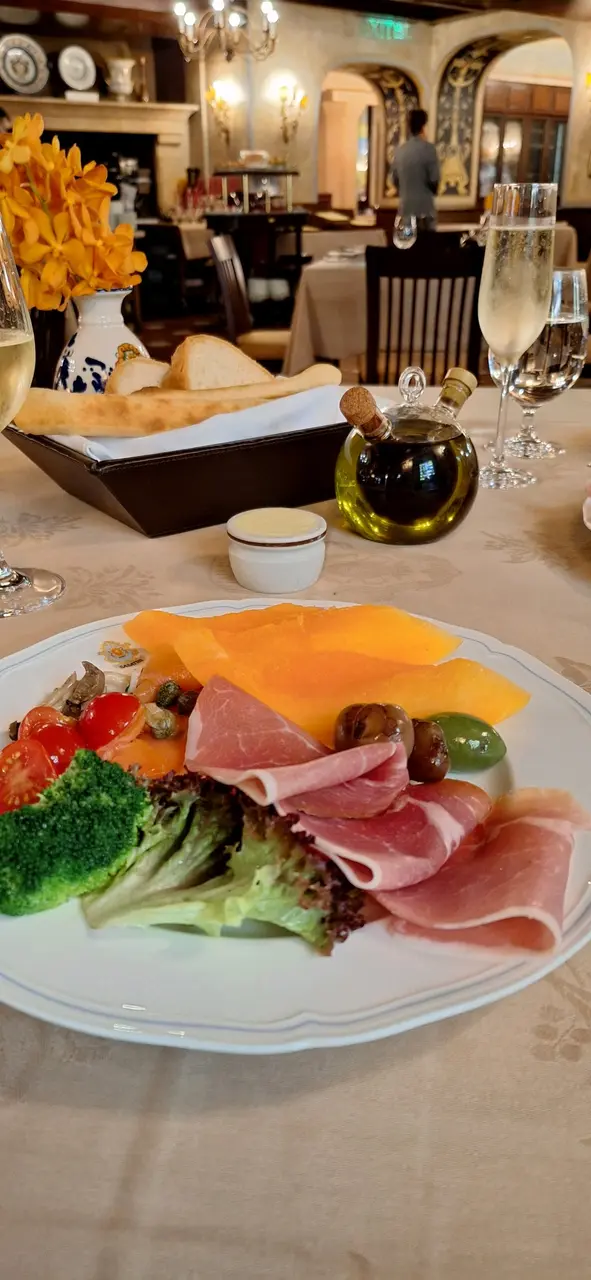 享受😎了兩次Sabatini 的 brunch,覺得食物、服務和環境都是非常滿意的,所以力推Sabatini給我們合嘴形的好伙伴,要做我們定期的美食團聚😬今次享用的是餐廳的weekday set lunch ,如是Go Royal member 可以用1000積分買一張3 or 4 courses 的lunch set ,便宜大約$100🤭先來麵包籃,有必吃的Focaccia 和 Grissin帶有少少芝士鹹香和菜粒的frittata(意大利煎/烘蛋)好吃😋lunch set 的頭盤仍然是無限自助的!但價錢始終較週末日便宜那麼多,沒有❌龍蝦🦞蟹腳🦀等供應都好正常,但我仍然覺得是回本重點,因為他們的冷盤前菜新鮮有質素,加上調配得非常搭的醬料,令味道更上一層!還有多汁甜蜜的哈密瓜呢😋包住parma ham 同吃,就是「無得輸」🤤今次主菜竟然有香烤春雞😻春雞的雞皮烤至微微脆口,大部份邪惡油脂幾乎都烤走掉👍🏻⋯⋯入口一鼓炭燒香氣😌雞肉口感不會過於結實,能保持應有的肉汁,味道鹹鹹香香的,好對我口味,yum😋朋友order 了意粉,是 gnocchi napoletanti,我淺嚐了一口,意粉粒口感軟糯,有點像西式餃子皮,連同creamy的醬汁入口,味道不錯,始終是歷史悠久的正宗意大利餐廳,意粉好難出錯最後讓人興奮的甜品車出場了👏🏻每人可點兩款口味甜品,伙伴們都要了帝苑最經典、最出名的拿破崙蛋糕和Tiramisu!但咖啡控的我,見有咖啡撻😍當然不能錯過,然後再搭一件拿破崙蛋糕😋帝苑餅房出的撻皮,入口酥脆是必然👍🏻然後先嚐到面層,甜而不膩的奶油布甸醬,再入口就是底層濃郁又不會太甘苦的流心咖啡醬😋好吃!