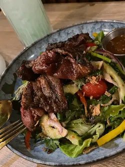 最近工作繁忙,為了追趕第三季報數的工作,已經很久沒有約朋友吃飯了。有見今天過了一個小Deadline,特別約好朋友來一個HappyFriday,及時行樂。這裏的裝修有特色,室外室內都設有酒吧,東南亞作為佈置主題,無論三五知己,抑或一大班朋友也十分適合來。鰂魚湧來都算數一數二的酒吧。Hoegaarden(⭐⭐⭐⭐⭐)這裏環境有情調,適合聊天,於是也點了一杯啤酒,輕鬆享受夜晚。Sizzling Night(⭐⭐⭐⭐⭐)今晚的主題是「Sizzling Night」,特別點了蝦肉薄餅和泰式牛肉薄餅。餅身即叫即製,上枱時熱辣辣。海蝦大大隻,肉質結實,配上微辣的醬汁,開胃又惹味,令人停不了口。另外泰式牛肉口味鮮嫩多汁,搭配印度薄餅,層次感非常豐富。Thai Mix Stir Fry(⭐⭐⭐⭐⭐)另外點了一份炒雜菜,補充纖維、吃得健康一點。當中有西蘭花、椰菜花等,吃起來清爽爽口。Sambal Baramundi(⭐⭐⭐⭐⭐)盲曹魚以印尼方式烹調,配上多種香料,味道層次豐富。魚肉已經起骨,吃起來啖啖肉,而且十分鮮嫩。Pad Thai Noodles(⭐⭐⭐⭐⭐)最後點了一份泰式炒麵,吃點澱粉質才飽肚。裏面有大蝦、花生等材料,加上微酸的秘製醬汁,令人食慾大增,為這頓晚餐畫上完美句號。總括而言,這間餐廳食物質素高,而且價錢不算太貴。下次有機會也會再來品嚐。~~~~~~~~~~~~~~~~~~~~~~~~~Sage & Salt 鰂魚涌英皇道979號太古坊電訊盈科中心地下5號舖推介菜色:Sizzling Night, Sambal Baramundi👍🏻地方舒適👍🏻適合傾偈👍🏻食物精緻…查看更多