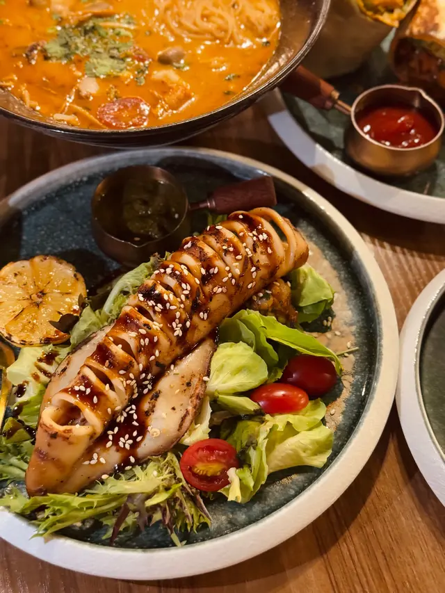 最近工作繁忙,為了追趕第三季報數的工作,已經很久沒有約朋友吃飯了。有見今天過了一個小Deadline,特別約好朋友來一個HappyFriday,及時行樂。這裏的裝修有特色,室外室內都設有酒吧,東南亞作為佈置主題,無論三五知己,抑或一大班朋友也十分適合來。鰂魚湧來都算數一數二的酒吧。Hoegaarden(⭐⭐⭐⭐⭐)這裏環境有情調,適合聊天,於是也點了一杯啤酒,輕鬆享受夜晚。Sizzling Night(⭐⭐⭐⭐⭐)今晚的主題是「Sizzling Night」,特別點了蝦肉薄餅和泰式牛肉薄餅。餅身即叫即製,上枱時熱辣辣。海蝦大大隻,肉質結實,配上微辣的醬汁,開胃又惹味,令人停不了口。另外泰式牛肉口味鮮嫩多汁,搭配印度薄餅,層次感非常豐富。Thai Mix Stir Fry(⭐⭐⭐⭐⭐)另外點了一份炒雜菜,補充纖維、吃得健康一點。當中有西蘭花、椰菜花等,吃起來清爽爽口。Sambal Baramundi(⭐⭐⭐⭐⭐)盲曹魚以印尼方式烹調,配上多種香料,味道層次豐富。魚肉已經起骨,吃起來啖啖肉,而且十分鮮嫩。Pad Thai Noodles(⭐⭐⭐⭐⭐)最後點了一份泰式炒麵,吃點澱粉質才飽肚。裏面有大蝦、花生等材料,加上微酸的秘製醬汁,令人食慾大增,為這頓晚餐畫上完美句號。總括而言,這間餐廳食物質素高,而且價錢不算太貴。下次有機會也會再來品嚐。~~~~~~~~~~~~~~~~~~~~~~~~~Sage & Salt 鰂魚涌英皇道979號太古坊電訊盈科中心地下5號舖推介菜色:Sizzling Night, Sambal Baramundi👍🏻地方舒適👍🏻適合傾偈👍🏻食物精緻…查看更多