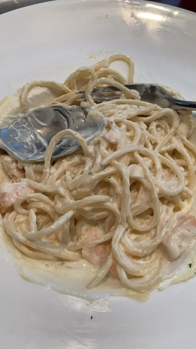 第一次Openrice食評就獻比呢間。未食過d咁難食嘅野,兜椰菜花湯0調味唔知飲緊乜,比較貼切嘅形容係一兜有菜味ge水。問返同行友人佢哋果兜反而係死咸,懷疑係我果碗唔記得加鹽,不過其實都冇分別,一樣係入唔到口。至於主菜叫左個Carbonara,第一眼已經覺得係用超市d車打芝士片溶落去咁,食落口咸到苦咁,份量又細,真心呢種質素自己屋企煮都仲好食,咁樣收差唔多$200真係唔能夠接受。再睇返其他人食果d,尤其係個Shirasu,放一堆吻仔魚喺兜意粉上面就$130?認真咩?…查看更多