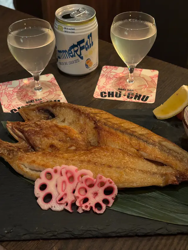 同朋大去咗一間驚喜嘅日式清酒bar「Sake Bar CHU CHU」🍶有齊各款特色清酒😍最啱想輕鬆chill下又想細味新意思清酒嘅朋友😬.⚠️此餐廳收取10%服務費💰.磯煮鮑魚🐚單點$108💰鮑魚口感軟且彈牙😆鮑魚肝完吸收晒醬汁味道😋.黑松露醬魷魚筒意大利飯🦑單點$98💰魷魚筒包住意大利飯🍚飯粒軟綿又帶有魷魚嘅彈性😗加上濃郁黑松露醬🖤好味道👍🏻.味噌汁煮藍青口🥢單點$78💰青口新鮮,味噌湯底溫和清新☺️.唐揚小白蝦🦐單點$78💰小白蝦炸到脆卜卜😝加上檸檬汁🍋食到停唔到🤣.自家月見免治雞肉棒🐓單點$58💰.明太子醬松阪豚🐖單點$52💰松阪豚肉質Q彈😙搭配鹹香帶微辣的明太子醬🌶️.雞腿肉🍗單點$52💰.雞蠔肉🐔單點$48💰雞蠔肉係雞腿根部近雞下背嘅部位,非常珍貴✨肉質軟嫩多汁🤤.燒椒皮蛋🫑單點$48💰.開心果乳酪芝士蛋糕🍰單點$78💰開心果香濃🌰蛋糕質感幼滑💯.Wakaze Summer Fall🥂單點$158💰.LIBROM X SAKE INCIDENT 芫茜黃金檸檬90mL🌿單點$108💰芫茜無乜🥺不過幾Fresh💦.武内 おかめ果実物語 純米草莓90mL🍓單點$98💰滿滿草莓果肉感😌.千代むすび ULTRA PEACH 桃90mL🍑單點$98💰.香住鶴 柚子酒90mL🍊單點$98💰香甜柚子味,夠甜😊.澤の花 Beau Michelle 黑90mL🍸單點$88💰.飛驒高山 超辛口純米吟釀90mL🍾鍾意辛口嘅啱晒😉…查看更多