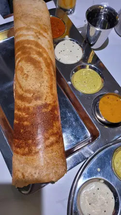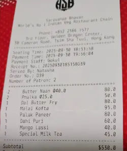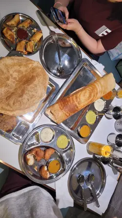 Saravanaa Bhavan既分店開遍世界各地,尖沙咀店係香港既第一間分店。餐廳嘅氛圍充滿異國情調,光猛乾淨,空間充足。服務方面,員工熱情友善。Rasam湯清爽可口,微微酸味同香料香氣令人開胃。Cheese Masala Dosa外皮酥脆,內餡濃郁嘅芝士,仲拉到絲!入面仲有好多薯蓉!正!Garlic Naan 柔軟又香口!配合Palak Palak Paneer濃郁嘅菠菜咖喱醬同新鮮奶酪完美融合,口感細膩。Dahi puri作為開胃小食,外脆內嫩,酸奶嘅清甜同香料嘅辛辣形成絕妙對比。飲品方面要左Mango Lassi 同Refresher,好fresh & smooth。…查看更多