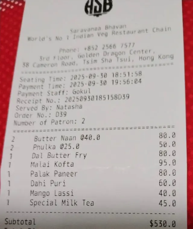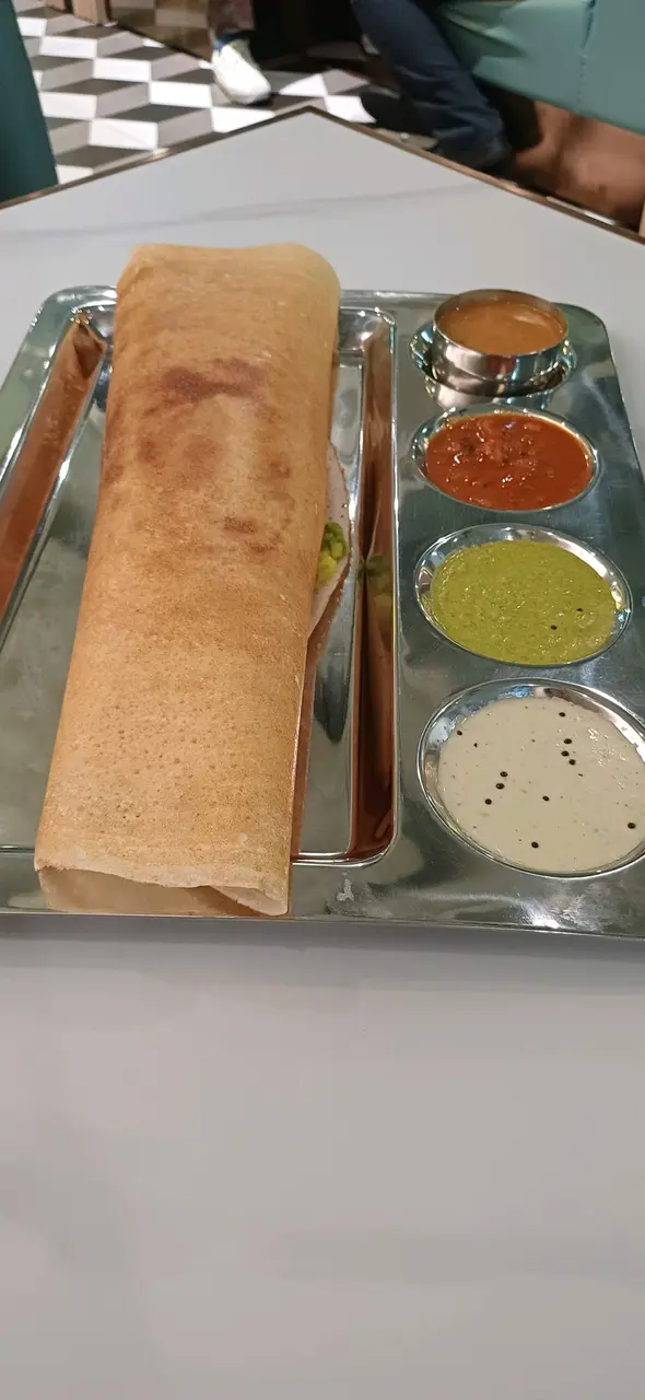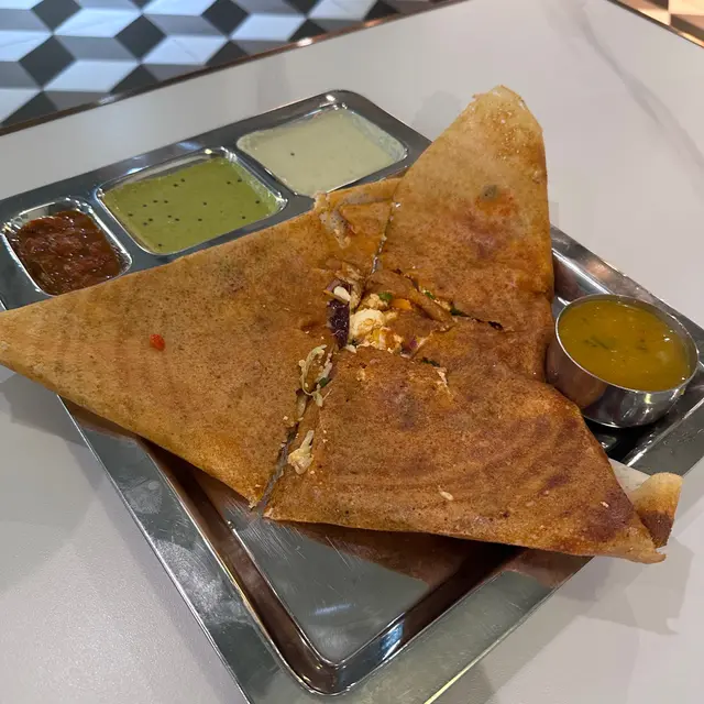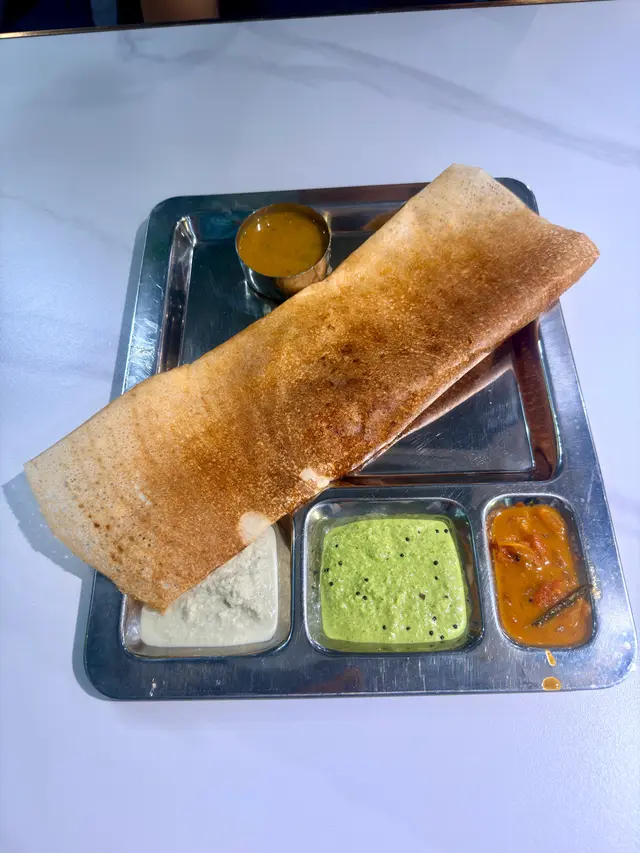 Saravanaa Bhavan既分店開遍世界各地,尖沙咀店係香港既第一間分店。餐廳嘅氛圍充滿異國情調,光猛乾淨,空間充足。服務方面,員工熱情友善。Rasam湯清爽可口,微微酸味同香料香氣令人開胃。Cheese Masala Dosa外皮酥脆,內餡濃郁嘅芝士,仲拉到絲!入面仲有好多薯蓉!正!Garlic Naan 柔軟又香口!配合Palak Palak Paneer濃郁嘅菠菜咖喱醬同新鮮奶酪完美融合,口感細膩。Dahi puri作為開胃小食,外脆內嫩,酸奶嘅清甜同香料嘅辛辣形成絕妙對比。飲品方面要左Mango Lassi 同Refresher,好fresh & smooth。…查看更多