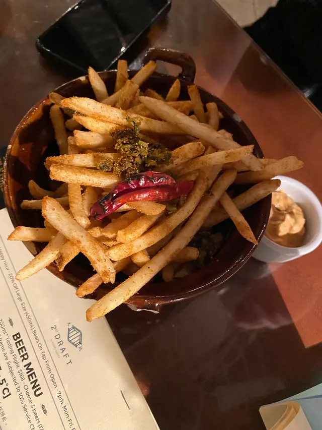 今次來到呢間舒服嘅小酒吧,想同大家分享下我嘅美食體驗。大家都知道大坑嘅薯條點都幾搶手,所以我當然要開餐先點一份。好彩,佢哋個薯條真係好正!即炸嘅脆皮,撒滿香氣撲鼻嘅孜然粉,一咬落去嗲到爆🤤!口感攞筷子咁嘅薯條真係冇得輸。跟住,我試咗佢哋嘅紅菜頭牛油果,色彩繽紛嘅擺盤吸引咗我眼球,食咗一啖,果然清新爽口,個yogurt同黑醋汁相得益彰,酸酸甜甜嘅感覺就好似初戀咁甜蜜。其次,腐乳卡邦尼畀我帶嚟咗一個意想不到嘅驚喜,傳統味道噉既熟悉又新鮮,港式嘅腐乳取代咗外國嘅芝士,咸香中帶鮮味,真係令人回味無窮。最後,當然唔少得招牌南乳醃三黃雞漢堡,係今晚嘅压軸大戲💥!南乳嘅豐厚味道貼合咗濕潤多汁嘅雞肉,咬落去肉質細嫩,而且個burger 漢堡間中夾雜嘅麵包都軟熟得嚟唔會太乾,每一啖都感覺到佢哋嘅用心。總括黎講,呢度提供嘅美食又平民化又有獨特驚喜,令人食指大動。下次想輕鬆小酌,又想食啲地道美味,記得試試呢間小酒吧啦!🍻👍🌟…查看更多