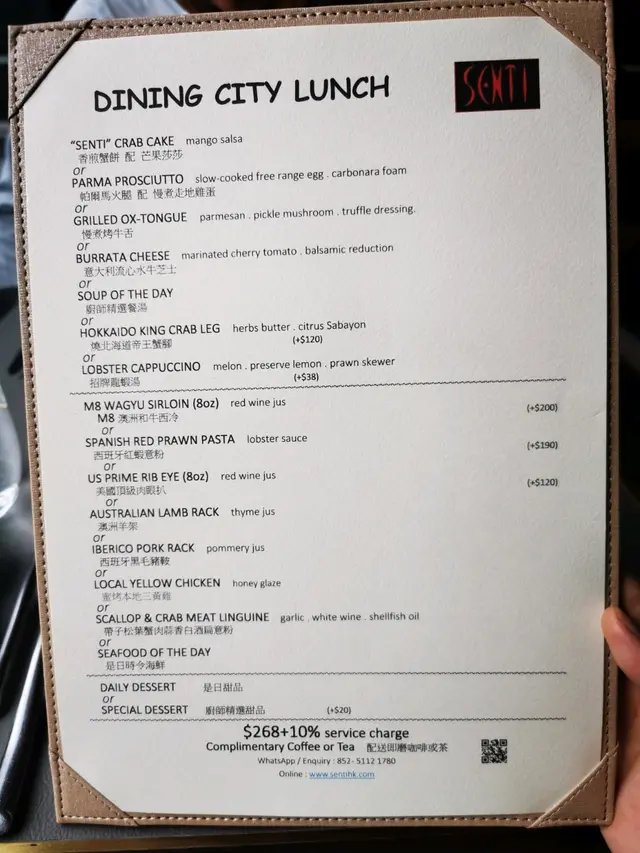 係大館對而嘅Senti由來自澳洲一星主廚Alex Law擔任行政總廚.將由歐洲美食中汲取靈感後將其融入創新菜餚中.6 course dinner menu $788 每道菜設計及味道都相當驚艷!— 1st Course —MATSUBA CRAB採用荷蘭溫室蕃茄製作 蟹肉鮮味配上蕃茄香甜 底下再配上蕃茄清湯啫喱 相當清新及醒胃 蕃茄上加入炸藜麥令口感更豐富— 2nd Course —SCALLOP "En Papillote" 以錫紙包裹住北海道帶子。菇菌。黑松露帶子香嫩甘甜 同時充滿濃郁菌香 好入味— 3rd Course —LOBSTER波士頓龍蝦配上日本大根再伴以提子。白酒牛油汁。羽衣甘藍 整道菜相當豐富龍蝦肉質爽彈鮮甜 伴上白酒牛油汁帶微微甜味 令龍蝦鮮味更突出底下大根香甘甜 剛好平衡返膩感食完龍蝦同大根後絕對唔好浪費白酒牛油汁! 絕對係整道菜嘅精華 配搭自家製彿卡夏麵包將醬汁一滴不漏咁清晒— 4th Course —LOBSTER CAPPUCCINO質感好似飲緊cappuccino!充滿濃郁龍蝦香同時入口又充滿一陣輕盈感— 5th Course —主菜一共有4款可以選擇 最後一道紅蝦意粉雖然要額外加配但我建議大家必定要點! 呢道紅蝦意粉絕對係我食過咁多間之中最愛之一!XXL size紅蝦帶住極鮮蝦香 蝦頭內仲蘊藏大量濃郁蝦膏 令底下龍蝦汁意粉味道再昇華!好彩今次有額外加到!!!另外羊架同樣出色 肉質嫩腍又不失彈性帶住淡淡羊羶香氣但唔過濃 仲有平時較少見嘅Sweetbread羊胸線 羊羶味相對較濃郁˚ M8 WAGYU BEEF SIRLOIN˚ WELSH LAMB RACK˚ PATAGONIAN TOOTHFISH˚ SPANISH RED PRAWN PASTA +$180— 6th Course —OOLONG TEA ICE-CREAM salty caramel.味道好似飲緊台式奶茶! 烏龍茶嘅茶甘香氣突出 配上少少海鹽令焦糖香氣更濃 底下加上粒粒榛子充滿nutty 香氣…查看更多
