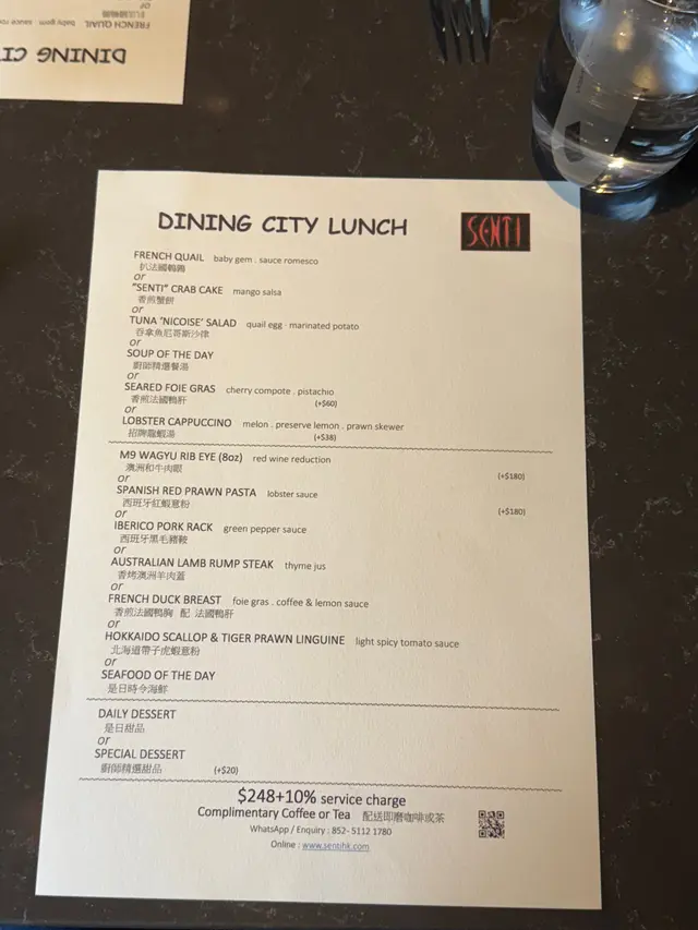 係大館對而嘅Senti由來自澳洲一星主廚Alex Law擔任行政總廚.將由歐洲美食中汲取靈感後將其融入創新菜餚中.6 course dinner menu $788 每道菜設計及味道都相當驚艷!— 1st Course —MATSUBA CRAB採用荷蘭溫室蕃茄製作 蟹肉鮮味配上蕃茄香甜 底下再配上蕃茄清湯啫喱 相當清新及醒胃 蕃茄上加入炸藜麥令口感更豐富— 2nd Course —SCALLOP "En Papillote" 以錫紙包裹住北海道帶子。菇菌。黑松露帶子香嫩甘甜 同時充滿濃郁菌香 好入味— 3rd Course —LOBSTER波士頓龍蝦配上日本大根再伴以提子。白酒牛油汁。羽衣甘藍 整道菜相當豐富龍蝦肉質爽彈鮮甜 伴上白酒牛油汁帶微微甜味 令龍蝦鮮味更突出底下大根香甘甜 剛好平衡返膩感食完龍蝦同大根後絕對唔好浪費白酒牛油汁! 絕對係整道菜嘅精華 配搭自家製彿卡夏麵包將醬汁一滴不漏咁清晒— 4th Course —LOBSTER CAPPUCCINO質感好似飲緊cappuccino!充滿濃郁龍蝦香同時入口又充滿一陣輕盈感— 5th Course —主菜一共有4款可以選擇 最後一道紅蝦意粉雖然要額外加配但我建議大家必定要點! 呢道紅蝦意粉絕對係我食過咁多間之中最愛之一!XXL size紅蝦帶住極鮮蝦香 蝦頭內仲蘊藏大量濃郁蝦膏 令底下龍蝦汁意粉味道再昇華!好彩今次有額外加到!!!另外羊架同樣出色 肉質嫩腍又不失彈性帶住淡淡羊羶香氣但唔過濃 仲有平時較少見嘅Sweetbread羊胸線 羊羶味相對較濃郁˚ M8 WAGYU BEEF SIRLOIN˚ WELSH LAMB RACK˚ PATAGONIAN TOOTHFISH˚ SPANISH RED PRAWN PASTA +$180— 6th Course —OOLONG TEA ICE-CREAM salty caramel.味道好似飲緊台式奶茶! 烏龍茶嘅茶甘香氣突出 配上少少海鹽令焦糖香氣更濃 底下加上粒粒榛子充滿nutty 香氣…查看更多