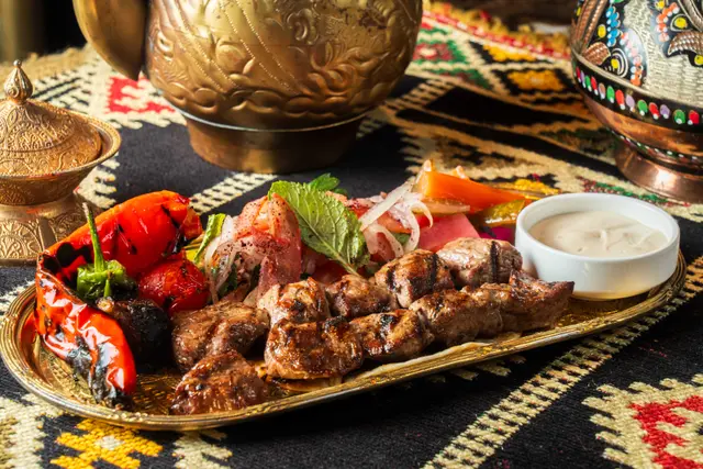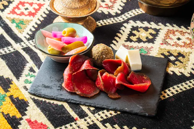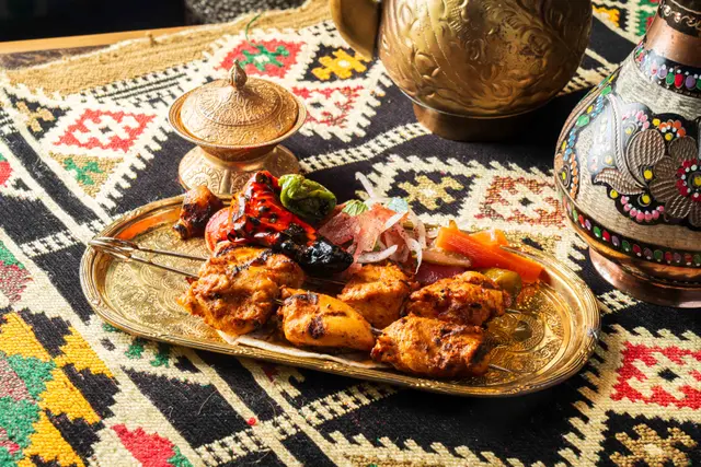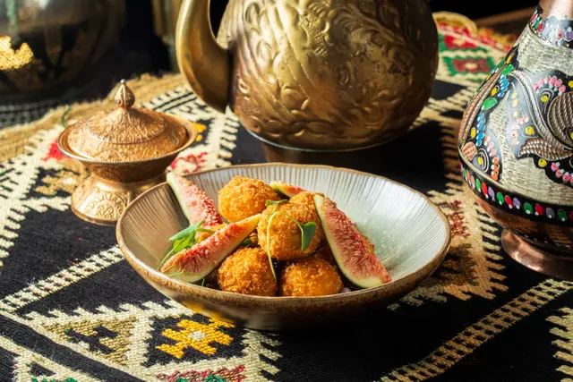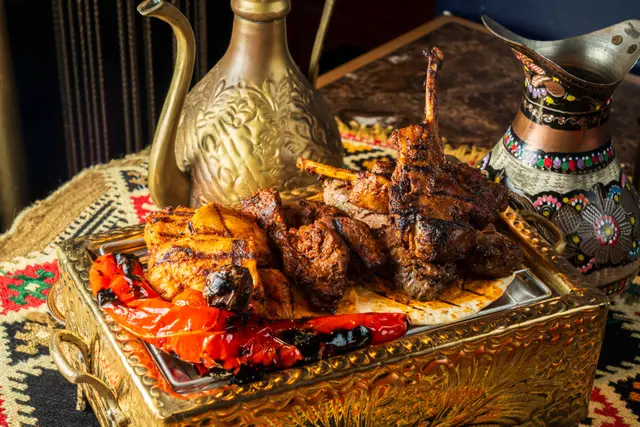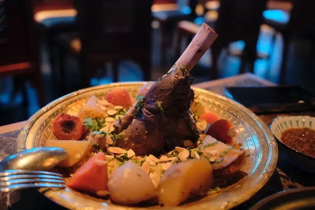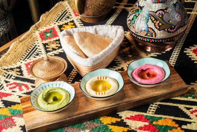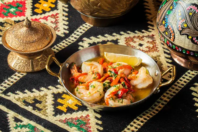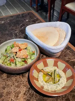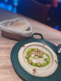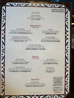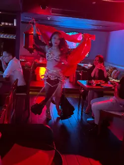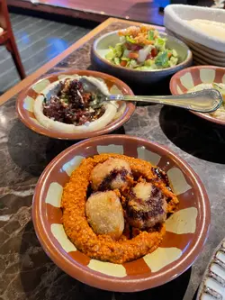 Shahrazad黎巴嫩餐廳的感官盛宴一出電梯金碧輝煌,以藍色為主調嘅設計,昏暗嘅環境添加咗神秘感,完成體驗到異國風情,空氣中浮動著香料與烤肉的溫熱氣息【前菜:葡萄乾鷹嘴豆蓉】月光般乳白的鷹嘴豆泥鋪成圓形圈,中間帶點葡萄粒,金黃橄欖油匯成漩渦,葡萄乾的蜜甜配現烤皮塔餅撕開時騰起的麥香,以及熱辣辣,相當可口。【蒜香檸檬蝦】肥美海蝦食落爽口彈牙,混合蒜片,檸檬汁,完全將蝦嘅鮮味帶出配合羅勒葉,香草🌿,惹味又開胃【美國牛肋肉燉秋葵】秋葵的黏液化作濃稠醬汁,燉至酥爛的牛肋肉。番紅花與肉桂在舌尖上留有餘香秋葵的清脆與牛肉軟腍,香濃牛肉油脂香,Base 用上大量蕃茄,加配煙燻Ouzi 香飯$38 ,飯香十足,感覺有啲似黃油飯【澳洲羊架串】炭火上烤過嘅羊架灑上孜然粉,外層羊肉粒烤到煙燻微燶,唔會過分油膩,點一點薄荷酸奶,中東味道完美帶出伴碟配有車厘茄,甜酸洋蔥【開心果米飯布丁】不可或缺的甜點🤭見個名好得意,又飯又布丁,究竟係咪甜品黎一食落去充滿驚喜,奶香混和開心果米飯粒,面頭襯有玫瑰花瓣碎,開心果碎,每一啖開心果味好濃郁,食落軟滑,感覺好幸福食飯途中有個女郎出嚟跳肚皮舞相當驚喜,裙褂飄逸帶動全場氣氛,感覺令人沉醉,贏來全場掌聲餐廳裝潢充滿左神秘阿拉伯風情,感覺令人放鬆,呢間絕對係值得一試嘅中東餐廳,食物同環境都好吸引,連Toilet設計都相當美…查看更多