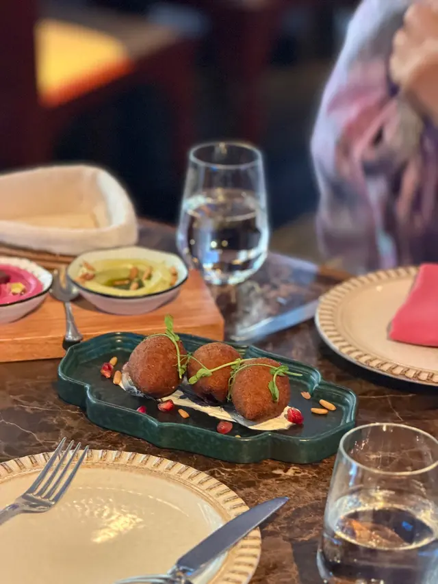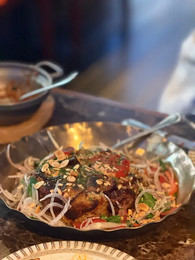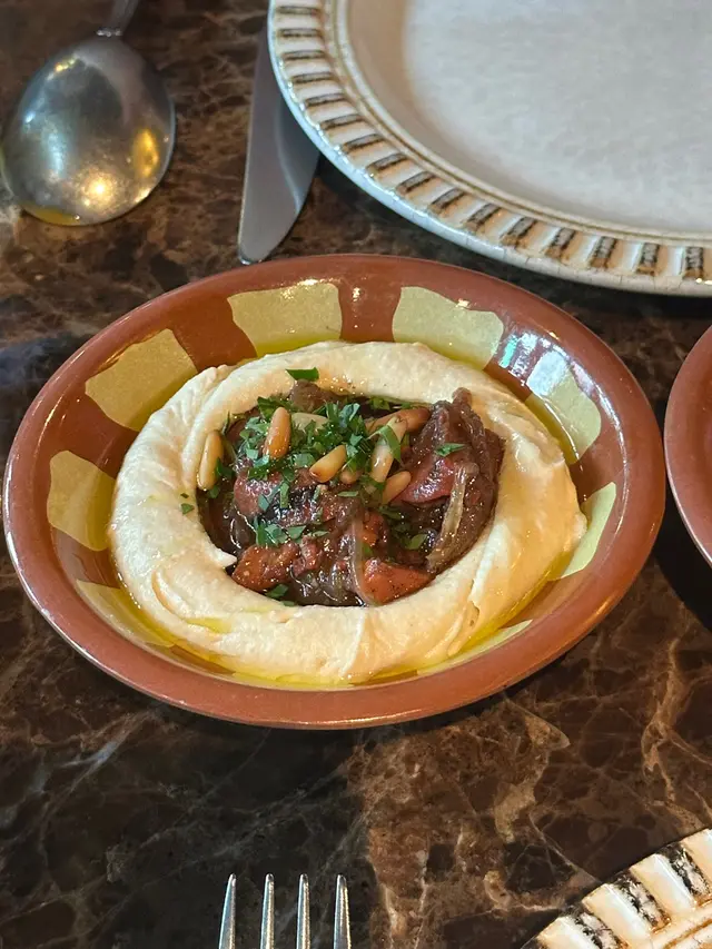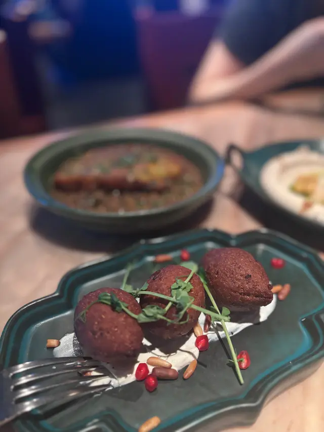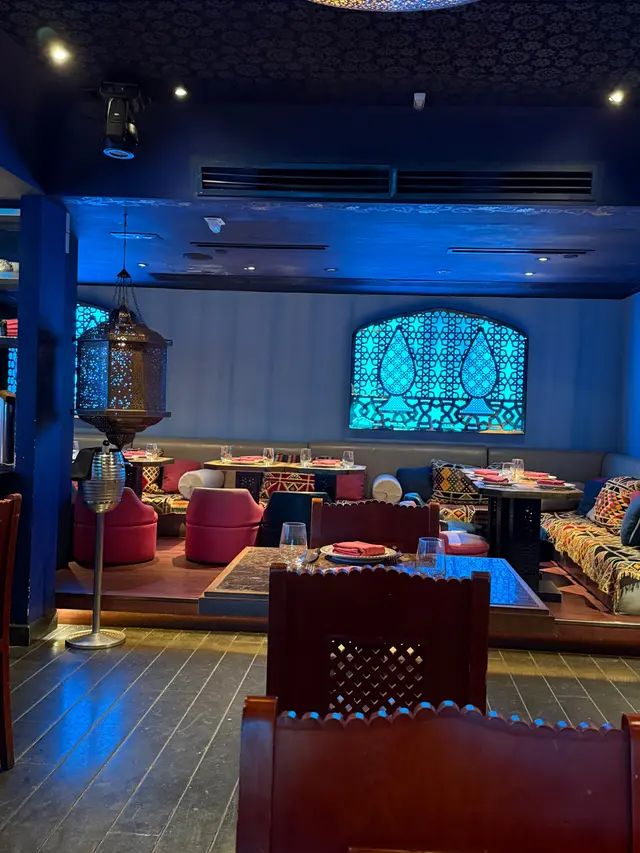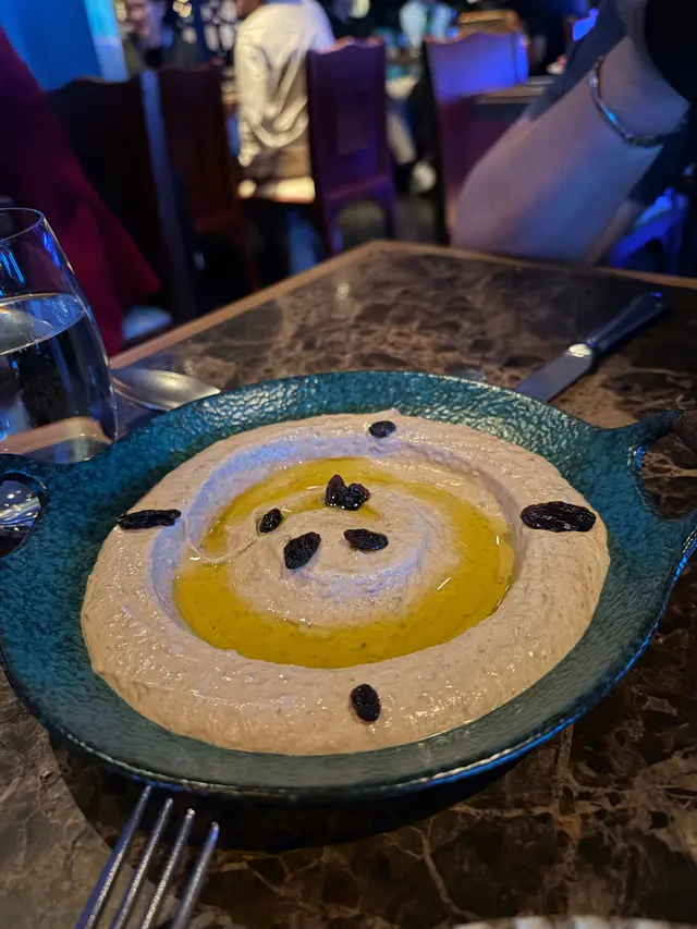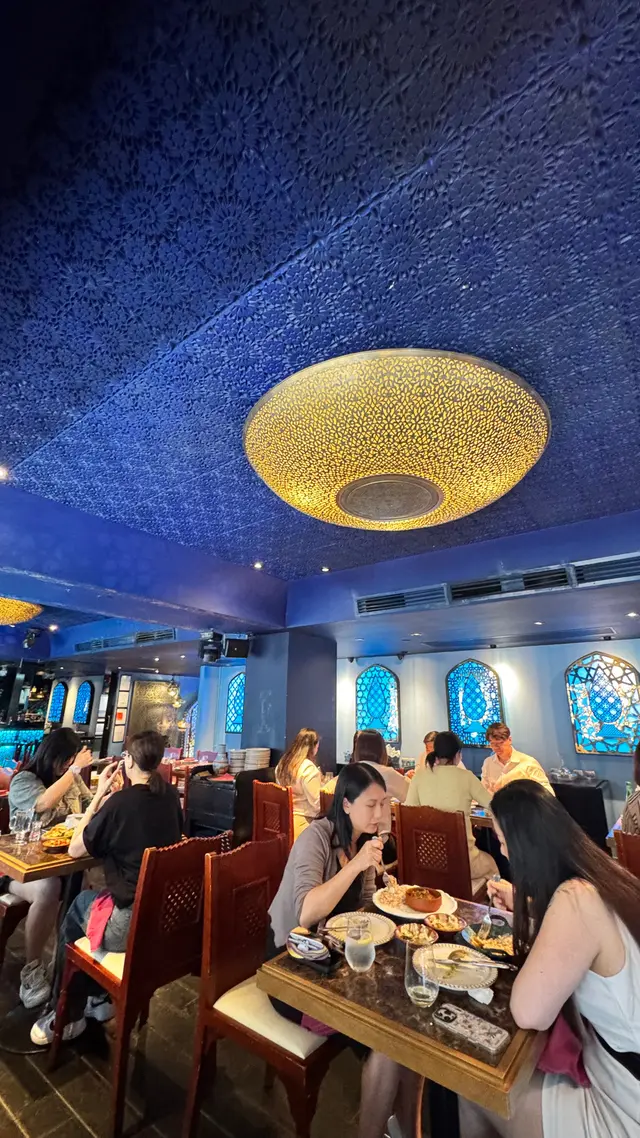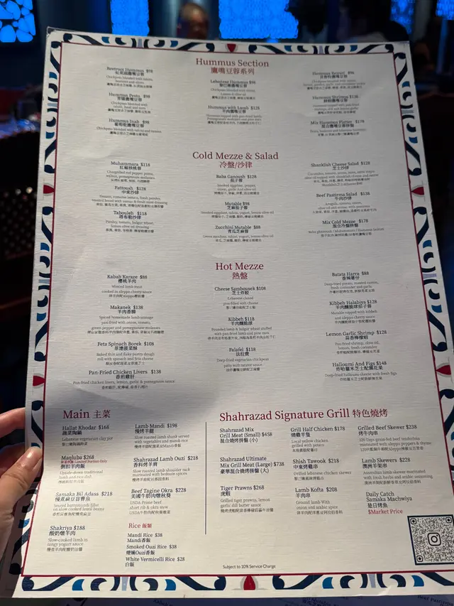 Shahrazad黎巴嫩餐廳的感官盛宴一出電梯金碧輝煌,以藍色為主調嘅設計,昏暗嘅環境添加咗神秘感,完成體驗到異國風情,空氣中浮動著香料與烤肉的溫熱氣息【前菜:葡萄乾鷹嘴豆蓉】月光般乳白的鷹嘴豆泥鋪成圓形圈,中間帶點葡萄粒,金黃橄欖油匯成漩渦,葡萄乾的蜜甜配現烤皮塔餅撕開時騰起的麥香,以及熱辣辣,相當可口。【蒜香檸檬蝦】肥美海蝦食落爽口彈牙,混合蒜片,檸檬汁,完全將蝦嘅鮮味帶出配合羅勒葉,香草🌿,惹味又開胃【美國牛肋肉燉秋葵】秋葵的黏液化作濃稠醬汁,燉至酥爛的牛肋肉。番紅花與肉桂在舌尖上留有餘香秋葵的清脆與牛肉軟腍,香濃牛肉油脂香,Base 用上大量蕃茄,加配煙燻Ouzi 香飯$38 ,飯香十足,感覺有啲似黃油飯【澳洲羊架串】炭火上烤過嘅羊架灑上孜然粉,外層羊肉粒烤到煙燻微燶,唔會過分油膩,點一點薄荷酸奶,中東味道完美帶出伴碟配有車厘茄,甜酸洋蔥【開心果米飯布丁】不可或缺的甜點🤭見個名好得意,又飯又布丁,究竟係咪甜品黎一食落去充滿驚喜,奶香混和開心果米飯粒,面頭襯有玫瑰花瓣碎,開心果碎,每一啖開心果味好濃郁,食落軟滑,感覺好幸福食飯途中有個女郎出嚟跳肚皮舞相當驚喜,裙褂飄逸帶動全場氣氛,感覺令人沉醉,贏來全場掌聲餐廳裝潢充滿左神秘阿拉伯風情,感覺令人放鬆,呢間絕對係值得一試嘅中東餐廳,食物同環境都好吸引,連Toilet設計都相當美…查看更多