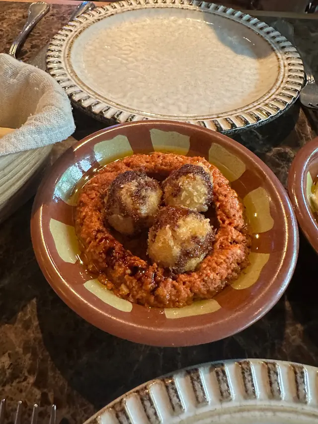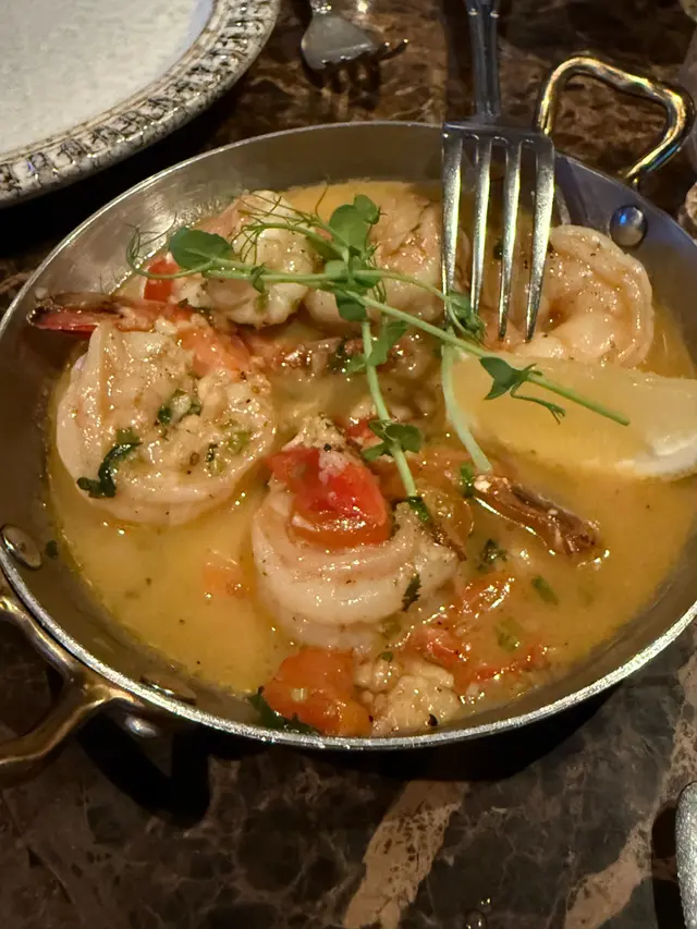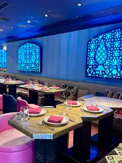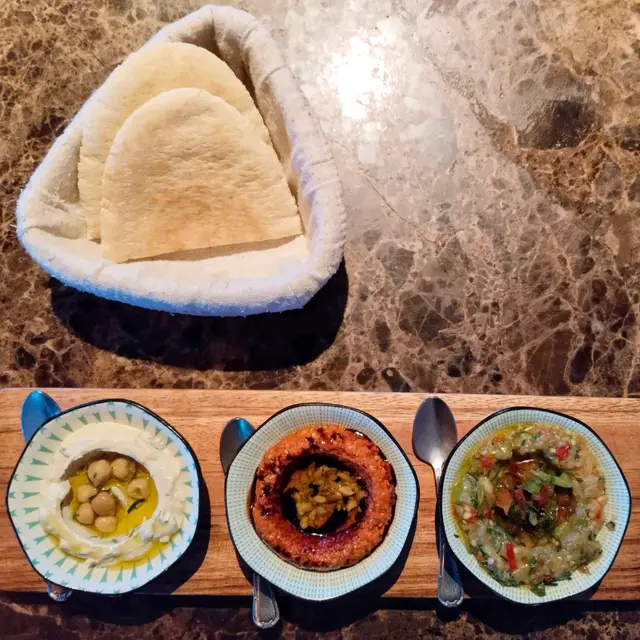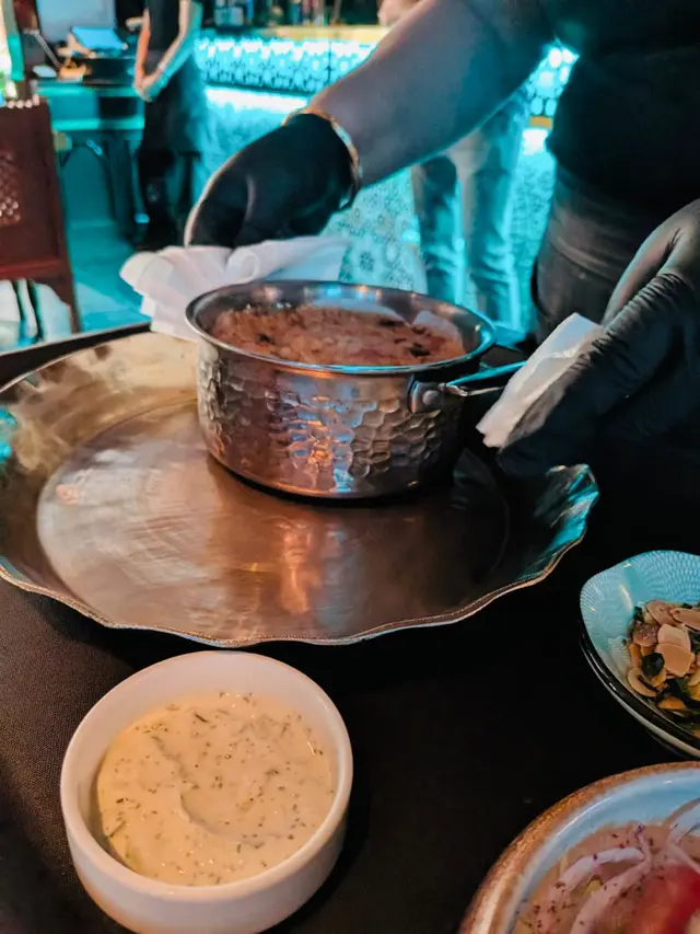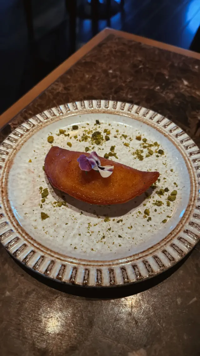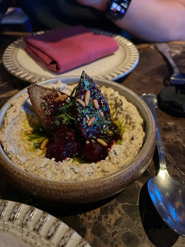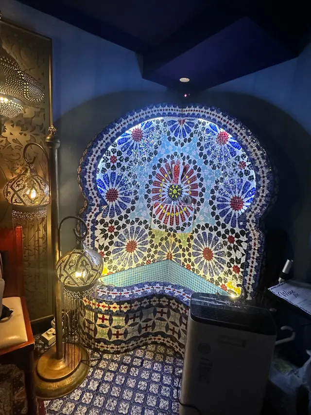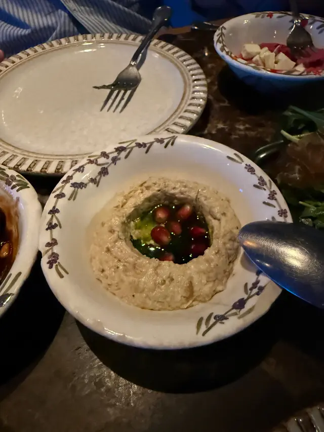 Shahrazad黎巴嫩餐廳的感官盛宴一出電梯金碧輝煌,以藍色為主調嘅設計,昏暗嘅環境添加咗神秘感,完成體驗到異國風情,空氣中浮動著香料與烤肉的溫熱氣息【前菜:葡萄乾鷹嘴豆蓉】月光般乳白的鷹嘴豆泥鋪成圓形圈,中間帶點葡萄粒,金黃橄欖油匯成漩渦,葡萄乾的蜜甜配現烤皮塔餅撕開時騰起的麥香,以及熱辣辣,相當可口。【蒜香檸檬蝦】肥美海蝦食落爽口彈牙,混合蒜片,檸檬汁,完全將蝦嘅鮮味帶出配合羅勒葉,香草🌿,惹味又開胃【美國牛肋肉燉秋葵】秋葵的黏液化作濃稠醬汁,燉至酥爛的牛肋肉。番紅花與肉桂在舌尖上留有餘香秋葵的清脆與牛肉軟腍,香濃牛肉油脂香,Base 用上大量蕃茄,加配煙燻Ouzi 香飯$38 ,飯香十足,感覺有啲似黃油飯【澳洲羊架串】炭火上烤過嘅羊架灑上孜然粉,外層羊肉粒烤到煙燻微燶,唔會過分油膩,點一點薄荷酸奶,中東味道完美帶出伴碟配有車厘茄,甜酸洋蔥【開心果米飯布丁】不可或缺的甜點🤭見個名好得意,又飯又布丁,究竟係咪甜品黎一食落去充滿驚喜,奶香混和開心果米飯粒,面頭襯有玫瑰花瓣碎,開心果碎,每一啖開心果味好濃郁,食落軟滑,感覺好幸福食飯途中有個女郎出嚟跳肚皮舞相當驚喜,裙褂飄逸帶動全場氣氛,感覺令人沉醉,贏來全場掌聲餐廳裝潢充滿左神秘阿拉伯風情,感覺令人放鬆,呢間絕對係值得一試嘅中東餐廳,食物同環境都好吸引,連Toilet設計都相當美…查看更多