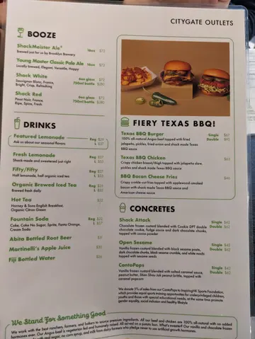Fresh Lemonade - Regular (Photo - Upper Left)Lemonade gave a refreshing sensation and tasted good too!Combo 2 $288Avocado Bacon Burger - Single (Photo - Second burger)A cheeseburger with ingredients including sliced avocado, applewood-smoked bacon and ShackSauce. It tasted smoky and a bit salty, sometimes creamy from avocado, and sometimes sweetness from the bun, the mixture of tastes gave a satisfactory execution.Shack Stack Burger A distinguishing feature of this cheeseburger is the addition of fried mushroom with melted muenster and chaddar cheeses, altogether creating a soft texture and tasted pleasantly juicy.Each of the four burgers has formulated ingredients, resulting in distinct flavors. This highlights the variety and individuality of the burgers, there is always one suitable for foodie.Fries X 2 SetsRegular fries with the same portion as Cheese fries set, with the same crinkle-cut and were seasoned well. Without cheese sauce on top, fries were crispy outside and soft inside, we were happy to consume the fries with ketchup or BBQ sauce from Chicken Bites.Vanilla Shakes & Coffee Shakes - Small Size Both shakes were creamier and denser than ice-cream, vanilla shakes (on the right) tasted like vanilla ice-cream while coffee shakes (on the left) tasted like drinking a very milky latte with coffee aroma, they were excellent shakes!