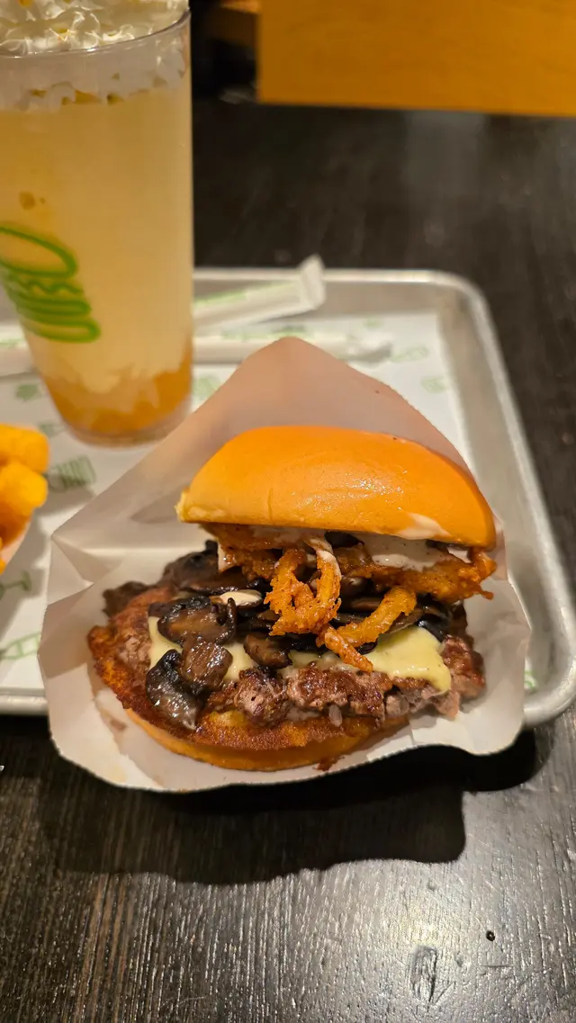 金鐘太古廣場嘅SHAKE SHACK真係幾多人幾受歡迎,尤其係漢堡同奶昔在金鐘地區好難搵到咁抵嘅價錢💰。建議大家用app提前落單,咁樣可以慳返好多等位時間⌛。今次我叫咗西部牛仔漢堡搭配招牌薯條,味道正又配搭得幾好味,牛肉多汁,麵包鬆軟,食落好滿足🥩🍔。飲品方面推薦楊枝甘露mike shake,甜度適中,配搭漢堡好醒胃🥤。餐廳環境現代而舒適,係金鐘一個輕鬆聚餐嘅好地方🏙️。整體嚟講,SHAKE SHACK質素穩定,價錢合理,無論係坐低Lunch還是快閃外賣都好適合👍。…查看更多