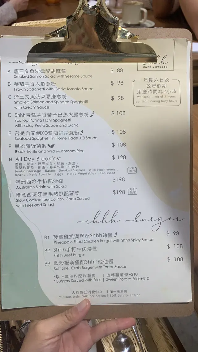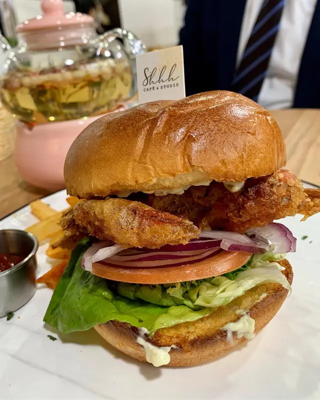 作為軟殼蟹愛好者之前係IG見過就決定一定要試下個軟殼蟹漢堡配shhh他他醬順便可以欣賞下九龍公園既風景😎所以聖誕之前就同朋友約咗呢度不過果日就沒有被安排窗邊位所以沒見到風景😂漢堡內容都幾豐富 軟殼蟹好吸睛😍又有唔少新鮮蔬菜 令人食指大動麵包烘得香脆 食到最後都唔會變得淋他他醬都幾特別 可以balance到整個burger既味道搭配既薯條都脆卜卜😃不過總體黎講覺得個蟹都炸得有少少油好彩我早有準備?加咗玫瑰茉莉花茶見到個茶壺同爐都咁pink pink即刻開心因為我自己超鍾意粉紅色😍茶既有茉莉花既清香又有玫瑰既幽香解油膩又暖身心🥰軟殼蟹漢堡配shhh他他醬 7.0/9玫瑰茉莉花茶 7.5/9OVERALL 7.0/9果日係lunch time都唔少人㗎估唔到就咁唔見咗嚕😔…查看更多