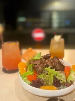 一入餐廳已經有成幅場咁大嘅港島夜景🌃投射燈下係一枱又一枱摸住酒杯底嘅打工仔😳餐廳雖然唔係十分大,但起碼環境係令人舒服👍🏼逢星期四至日都會有Live Music🎤我哋都揀中日子,可以飲住酒,聽住甜美而又熟悉嘅歌聲🥰🎬 檸檬胡椒鹽脆茄子條餐廳推介,值得一試🍆香脆可口就不在話下,調味上先係出色嘅地方🤓呢個胡椒偏向刺激,帶有辛辣感,同時檸檬嘅酸又可以緩和呢一種刺激感,佐酒一流😋𝄢..🎬 泰式脆炸五花肉選用半肥瘦嘅五花肉,入口唔會有油膩感👍🏼醬汁偏辣但係香口🤣唔太食得辣嘅朋友要注意返!炸皮夠脆,不過就有啲甩皮嘅情況,應該係切嘅時候影響咗!𝄢..🎬 蟹粉威靈頓龍蝦配龍蝦湯第一次遇見威靈頓龍蝦呢一道菜式🦞創意上加咗唔少分數🤭平時食威靈頓牛柳,內裡中間層會配黑松露🍄🟫今次就用上蟹粉蟹黄,味道依然都係濃郁🤤龍蝦肉相當結實彈牙,外層包裹住香脆嘅酥皮,每一啖都係滋味😋然後非常盞鬼地用上龍蝦頭去裝住龍蝦湯,都幾有心思👍🏼𝄢..🎬 抹茶紅豆提拉米蘇好開心終於唔係栗子蓉🤣今次係抹茶提拉米蘇,所以配嘅係紅豆蓉🫘微甜㗎,好啱我食!呢個紅豆蓉仲係即席加上去,好睇又好食😆𝄢..餐廳提供唔同嘅酒精飲品🍸非常之啱晒呢個氛圍,一路聽住歌,食好嘢🤤▫️以上食評為個人口味,只供參考▪️🧸🌞 𝗖.𝗼𝗼𝗸𝗶𝗻𝗴𝗯𝗲𝗮𝗿推介指數 ➤ 9️⃣✿…查看更多