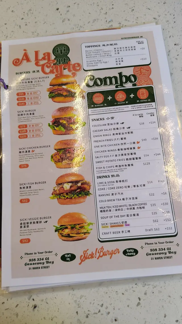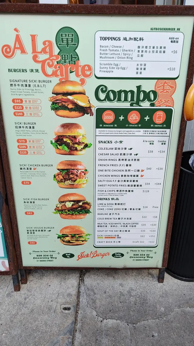 ᯾ SIGNATURE DOUBLE SICK! BURGER $125雙層邪惡撚手牛肉漢堡 餡料配太陽蛋香脆煙肉生菜蕃茄片平衡油膩感絕對是出色的味蕾炸彈🤤SIGNATURE SICK! BURGER stuffed with a sunny-side-up egg and crispy bacon🥓, was paired with lettuce and tomato slices to balance the richness🍅 It’s an absolute flavour bomb for your taste buds💣᯾SINGLE SICK! BURGER + Sunny-side up $85招牌牛肉漢堡加太陽蛋燶邊太陽蛋提升層次感✨香濃的漢堡扒充滿肉汁採用日式柚子醬很清爽🍋SICK! burger with a sunny-side-up egg 🍳 which added a layer of sophistication ✨Juicy, flavorful burger patty bursting with richness🥩 Paired with refreshing Japanese yuzu sauce🍋᯾ Taro SICK! Shake $62當然唔少得店家的奶昔必點的香芋維他奶奶昔幸運地獲得最後的一杯🥹採用芋圓爆谷焦糖脆脆以及豆腐花增添層次感口感順滑香芋味很突出精緻的賣相與店舖環境充斥着適合打卡的元素📸You can’t miss their signature milkshake🥤—luckily, I snagged the last cup!!🥺 Made with taro balls, honeycomb, and tofu pudding, it boasted a smooth texture with a bold taro flavor💜 The restaurant’s vibrant decor made it an ideal spot for snapping photos💖᯾ Oval & Choco SICK! Shake $52 (Combo)由阿華田及朱古力組成表面添上一層厚厚忌廉搭配迷你曲奇和棉花糖入口濃郁香甜而不過膩完美襯托重口味的漢堡🍔This indulgent milkshake, crafted with Ovaltine and rich chocolate🍫, was topped with a thick layer of cream and paired with mini cookies and marshmallows☁️ Its rich, sweet flavour, never overly cloying, perfectly complemented a savoury burger👍🏻—————————————————————————————Sick Burger (銅鑼灣)銅鑼灣希雲街31號地舖𓍼 #foodietiffhk 𓍼 #foodietiff推介𓍼 #foodietiff銅鑼灣𓍼 #foodietiff人氣之選🔥…查看更多