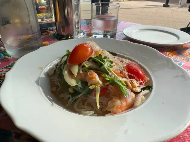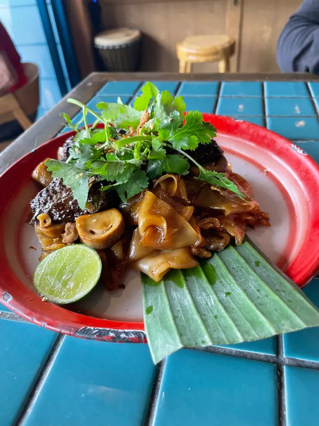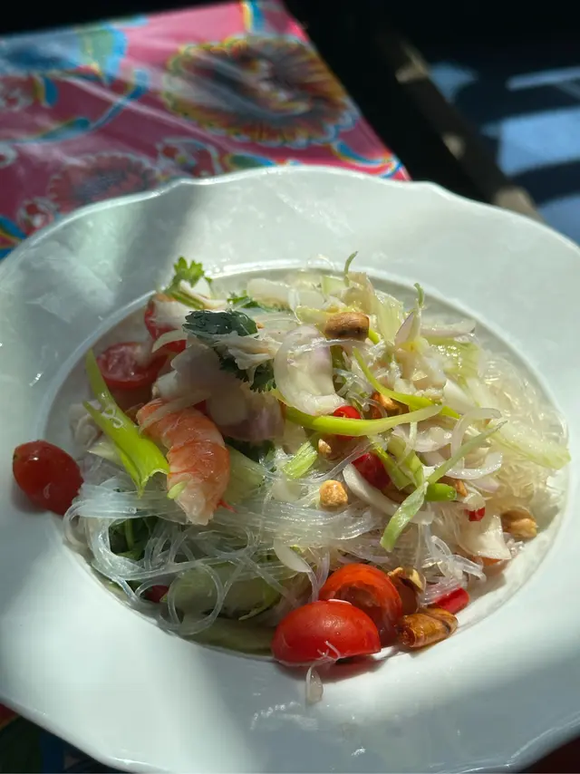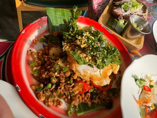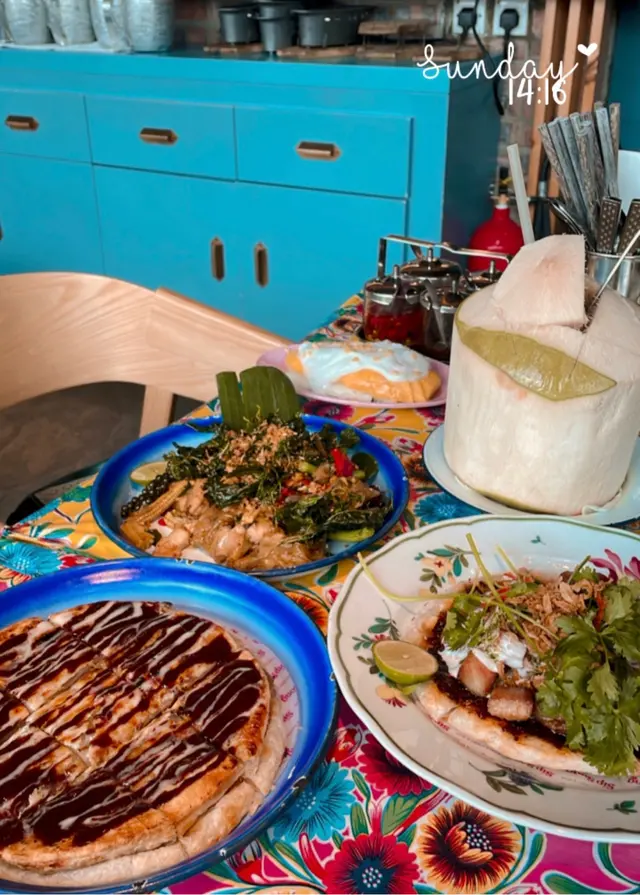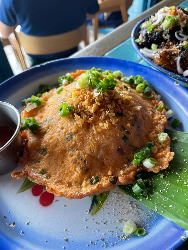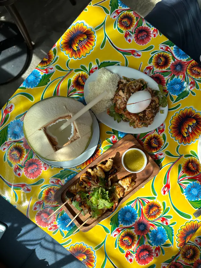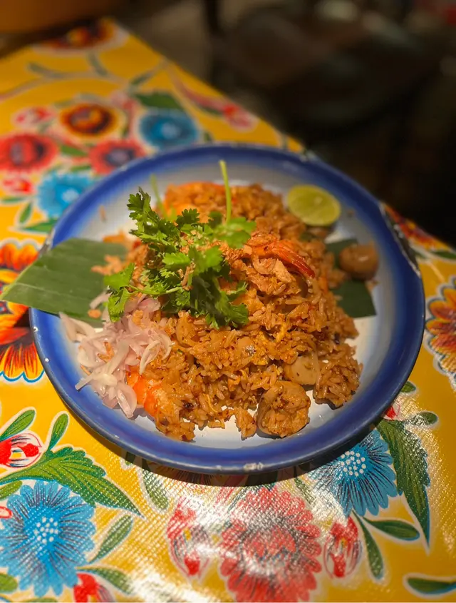 午餐就食個好有泰式風情嘅餐廳,入面嘅裝修同喺泰國小島上嘅都幾可亂真㗎,整個環境都好舒適!呢間餐廳我最推don’t tell mommy(好似係呢個名),大概係烤豬頸肉pizza,餅底用Roti - 印度薄餅,好香好酥,有別於平時做法,廚師將豬頸肉切粒,個人覺得口感大增,烤過之後減少油膩感,而香味大大提升,豬頸肉一般都唔會失準,今次直頭係出色呀冬陰公炒飯係好食嘅,粒粒分明,口味鍾意辣嘅就可以配搭埋喺旁邊嘅新鮮辣椒一齊食,但係就唔係話超級特別。唯一估佢唔到嘅係塊面嘅蝦冇乜雪藏味。燒魷魚串嚟講都係好食,烹調嘅時間啱啱好,係個同想像味道無分別嘅一個菜式。總括餐廳嘅食物都係有水準,不過食物份量好細,懷疑食晒成碟炒飯都唔夠飽,所以性價比唔算高,入開去都可以再食,但係唔會特登為咗佢而入去食。…查看更多