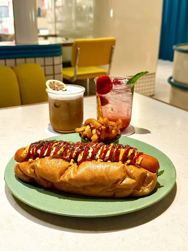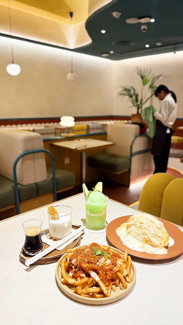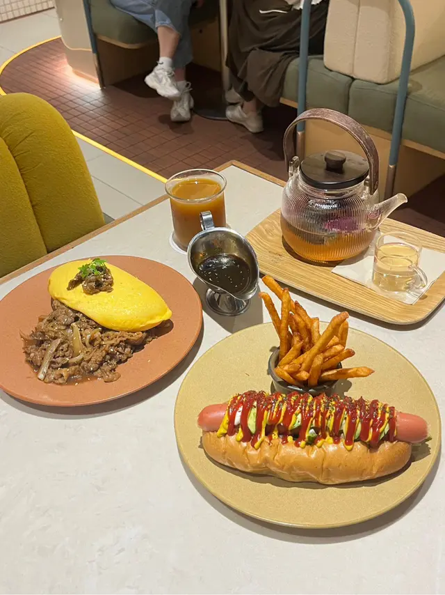 喜歡打卡,尋找特色和創意美食的我,最近在海港城發現一間頗吸引的韓式Cafe☕️.🎵 原木暖調的韓風Cafe!暖黃燈光配K-pop音樂循環播放,彷彿置身首爾😬 打卡氛圍感滿分📸.✨必試招牌美食✨🧀 雙重芝士漢堡蛋包飯 $108~ 蛋包飯是必點的招牌菜✨ 一刀切開🔪 金黃蛋皮瞬間湧出熱呼呼的流心蛋漿,再倒下雙重芝士,火山般熔岩倾瀉下來🌋~ 超厚漢堡牛肉外焦內嫩,咬下肉汁爆湧💥~ 香濃芝士與蛋香包裹每一粒飯,口感邪惡飽滿😋.🌭 墨西哥牛油果熱狗 $115~ 巨無霸級熱狗!尺寸超誇張😱 一份夠兩個人分享😋~ 一刀切下🔪 滿餡爆棚👏 鋪滿新鮮綿滑的牛油果、爽脆蔬菜與炒香的蘑菇,再淋上特製酸甜醬汁,視覺衝擊滿分💯~ Creamy的牛油果,紮實肉香的肉腸與蘑菇的鮮美,多重口感在嘴裡滾動,濃郁又清爽,飽足感爆表👏.🥞 石板街舒芙蕾 $98~ 舒芙蕾是另一必點👍 Duang Duang顫動的雲朵來襲!~ 石板街舒芙蕾蓬鬆綿軟,疊滿濃郁巧克力醬🍫 QQ Oreo和香脆杏仁,一勺舀下如空氣般輕盈,甜而不膩,視覺與味覺雙重暴擊😍📸.🫖 人見人愛花茶 $52~ 🌹一杯清香玫瑰茶,去油解膩超舒暢!飯後輕啜,花香縈繞,消滯醒胃無負擔💖.☕️ 鮮奶咖啡 $42~ 🧊冰涼鮮奶咖啡,無糖消暑超解渴☀️.這家韓風餐廳,食物顏值吸引,非常適合打卡🫶.#舒芙蕾 #蛋包飯 #香港美食 #香港美食打卡 #香港旅游 #香港旅游攻略 #香港美食推荐 #海港城美食 #香港美食探店 #香港美食攻略 #梳乎厘 #海港城 #尖沙咀美食 #吃了甜会开心 #咖啡店…查看更多