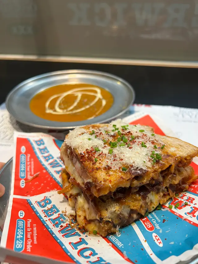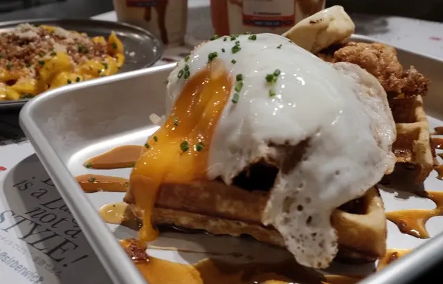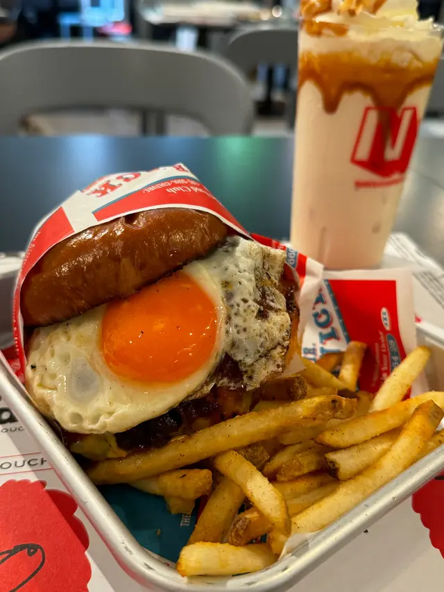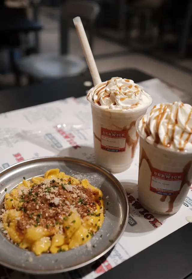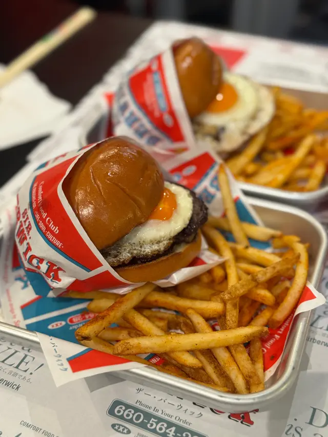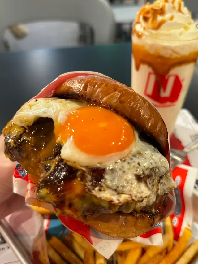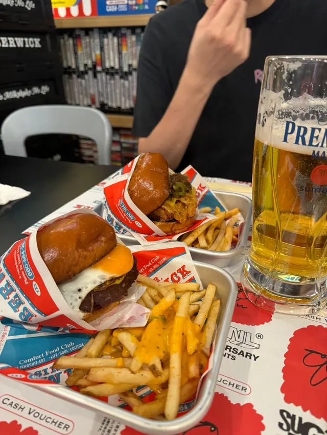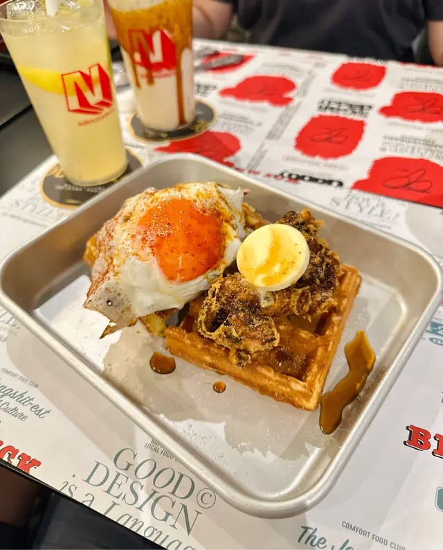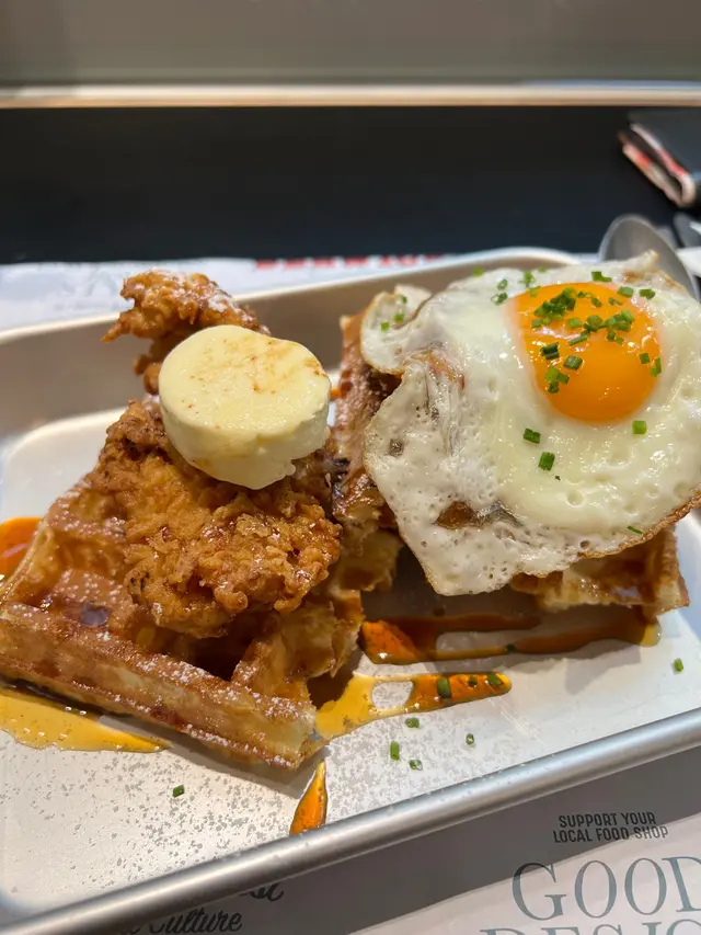 Sir Berwick裝修走日式風格適合同朋友慢慢食、傾偈打卡。今次主食叫咗和牛芝士太陽蛋漢堡, 炸雞太陽蛋窩夫。和牛芝士太陽蛋漢堡配香辣薯條 ($138)日式和牛漢堡扒,漢堡厚同大塊,肉質鬆軟多汁,太陽蛋完美流心配和牛漢堡超級夾,味道層次豐富。而香辣薯條辣度溫和。炸雞太陽蛋窩夫 ($138)而咖做緊 ($109)!!!日式唐揚炸雞配窩夫意外地夾!炸雞係外皮薄脆,肉質Juicy,食落去唔覺得油膩。再加上太陽蛋既蛋汁撈窩夫,邪惡但滿足!而窩夫,外脆內軟綿,淋咗蜜糖後,甜鹹交織,好特別。而飲品分別叫咗香蕉朱古力奶昔 ($59)同青檸批奶昔 ($69)奶昔都有驚喜,香蕉朱古力奶昔,口感順滑,朱古力味濃但唔會太甜,可以加錢加cream,打卡靚啲。青檸批奶昔,呢款真係必試青檸批款超Refresh!飲落去似冰凍版檸檬批,超級解膩,清新解渴。…查看更多