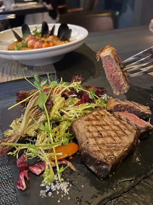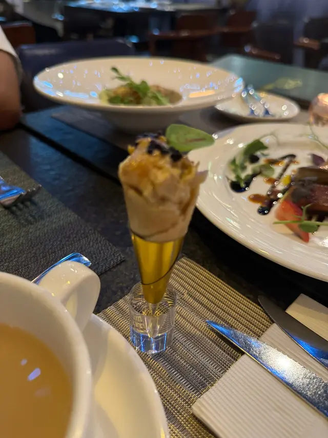 🇫🇷French Gourmay法國五月美食薈係受到法國領事館商務署邀請🤝🏻,為法國官方推廣法國🥘美食文化指定項目~餐廳內外嘅風景都好serene🌃,見到有窗外嘅高樓大廈嘅燈點綴,勁Romantic!🥰🧈香草牛油釀法式田螺田螺完全俾香草牛油味覆蓋住,爽口彈牙,一人一隻, 呢個就係法式點嘅序幕!🪞精選餐湯🎃南瓜湯好濃郁,加埋脆嘅🍞小麵包塊一齊食,簡直係完美組合!🥗凱撒沙律加24個月帕爾瑪火腿經典嘅沙律,但加埋帕爾瑪火腿就係更上一層樓!can’t get enough~🤤🥩板燒自家35天乾式熟成美國特級西冷扒伴燒汁係勁靚嘅牛扒!叫咗5️⃣成熟,又軟又重牛味,加埋燒汁一齊食勁正!😋🧄香蒜白酒大蜆意粉果然真係大蜆!白酒味唔重,所以啱晒唔鍾意太重酒味嘅人食~🍝🍨法式甜味可麗餅配雲尼拿雪糕最鍾意食甜品,呢個都冇令我失望,又係一個法式嘅甜品,可麗餅配雪糕係絕配!😍☄️火焰朱古力球呢個係重頭戲!會喺你面前set fire🔥,入邊有啲🥭生果碎,同溶咗嘅🍫朱古力食好好味!😈Red Evil呢個Cocktail有Lychee Liquor, Fresh 🍋🟩Lime Juice, 7up, 🍷Red Wine & Fresh 🫐Blue Berry,我從來都冇飲過,幾特別!✨…Read More