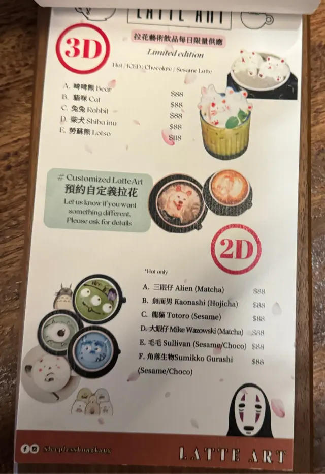 就正如鳥山明的龍珠陪我長大,當離開時就感到傷感一樣Sleepless 係我初做Foodie 時,一間令我經常有動力去打卡的Cafe ,不只因為滿佈Pepe 的環境,還有疫情時會幫你噴滿全身消毒的措施,親切的服務 (當中認識的店員都離開了),還有你想佢畫乜,佢都會努力畫的專業。黎到2024316銅鑼灣店就會結業,稍後會改為喺西貢再開舖,所以今次黎做最後的道別。途中嘅3D 拉花賣$100 ,雖然好似好貴,但係要知道功夫不少,所以都有佢價值所在,而且只要比時間佢哋可以做你想要嘅圖案。例如圖二嘅3D 拉花就係非常之大熱,原來佢哋最近都主打Melody,會非常可愛,咖啡的質素一般人比較少提,但拉花才是佢哋賣點。…查看更多