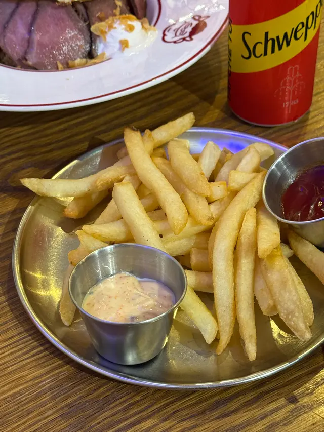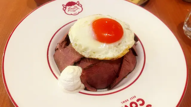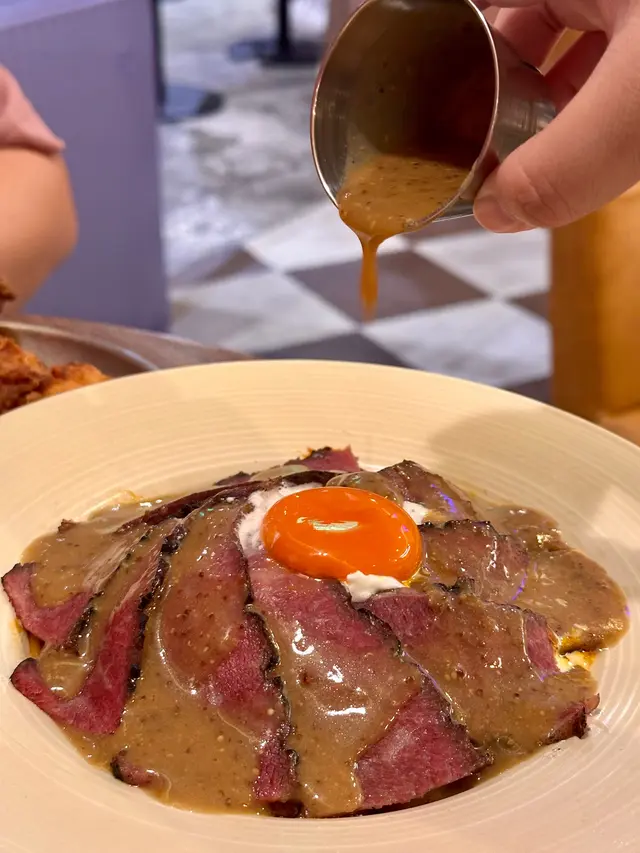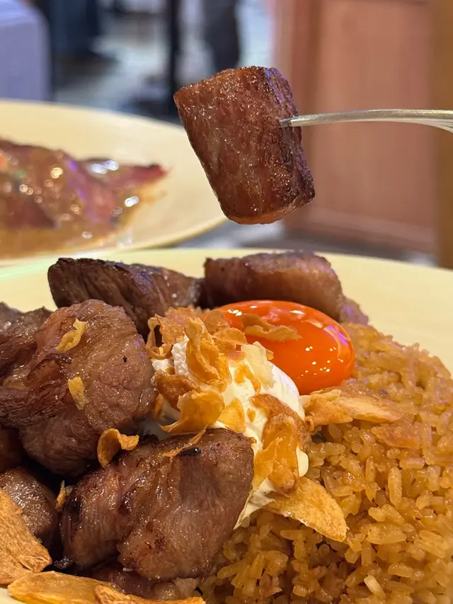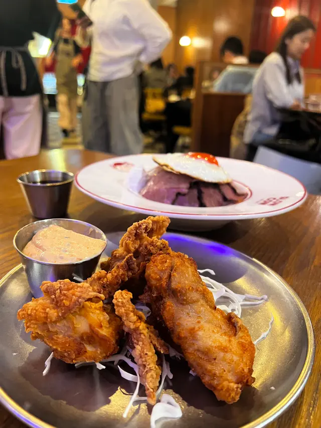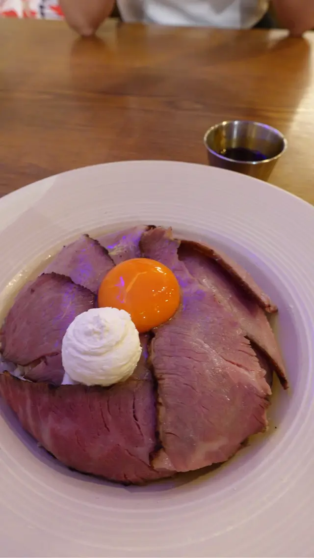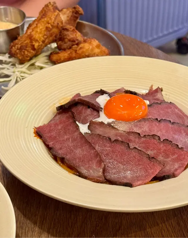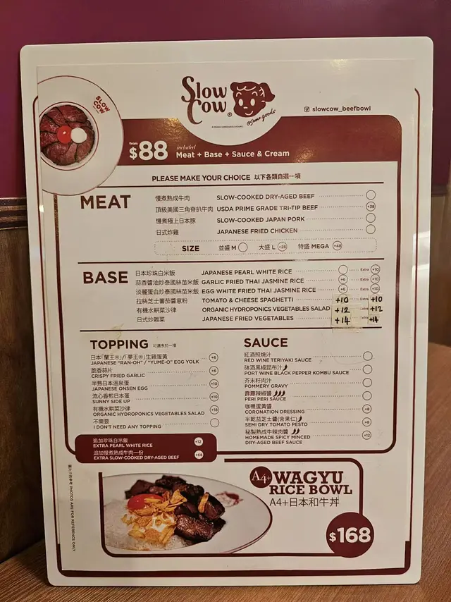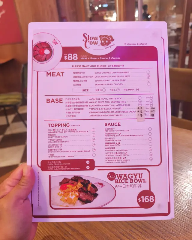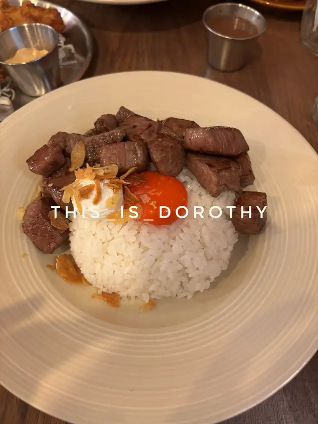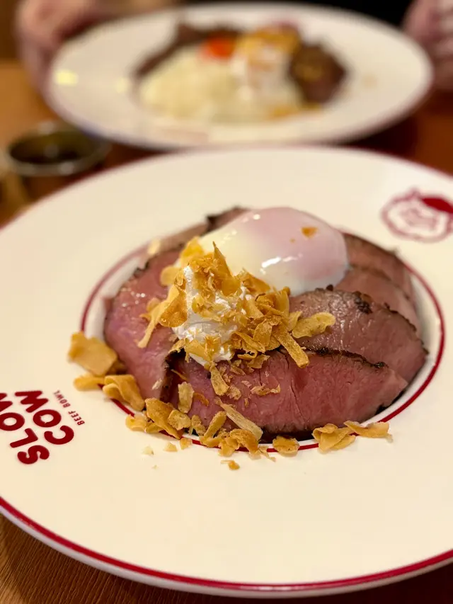 #chuchu食在尖沙咀📍 SLOW COW又係bookmark咗好耐嘅餐廳🥹喺K11 Art Mall HOW入面!成日見到啲牛都好想食!Style 有啲似美式又日式,坐得舒服!上菜都好快!💡平時應該都要等位的—————————————————————❣️ 慢煮熟成牛肉 $88 ▫️ 蒜香醬油炒泰國絲苗米飯 +$6▫️ 半熟日本溫泉蛋 +$10▫️ 芥末籽肉汁賣相💯 招牌,100%慢煮牛肉,牛肉係粉紅色,肉質好嫩滑,牛味好濃!醬油炒飯炒得乾身,有淡淡蒜味,炒到粒粒分明!.❣️ A4日本和牛丼 $168▫️ 淡麗蛋白炒泰國絲苗米飯 +$6▫️ 紅酒照燒汁呢個本身已經跟咗生蛋黃同蒜片!和牛切成粒粒,嘅油脂分佈平均,牛味好濃,真係好正!蛋白炒飯炒得好乾身,粒粒分明,撈埋生蛋黃!.❣️ 日式炸雞 $48本身已經配咗炸雞醬,另外加咗個咖哩蛋黃醬 +$8,同炸雞好夾!炸雞有4件,炸得超脆!.❣️ 經典脆炸薯條 $28
