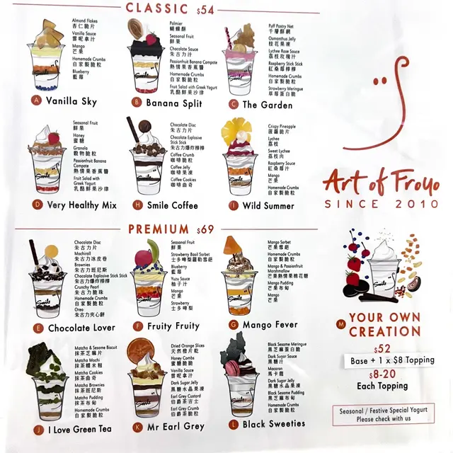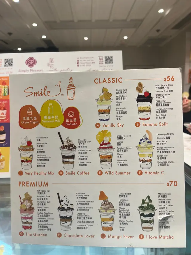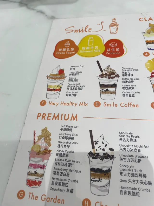飯後心思思想食甜品,但又怕太Heavy?咁就一定要試吓 **Smile Yogurt** 嘅乳酪杯啦!今次同男朋友一人一杯,專登揀咗兩款唔同嘅,試完真心覺得好滿足,健康得嚟又唔會寡,絕對係飯後甜品嘅完美選擇!😍**1. Very Healthy Mix (非常健康組合) ($56)** 呢杯個名真係冇改錯!一啖食落去,個感覺就係:**Fresh!健康!** 👍 * **主角乳酪:** 酸酸甜甜,質感滑得嚟帶少少稠,唔會水汪汪,奶香自然,明顯係靚嘢。 * **鮮果:** 今日嘅鮮果有士多啤梨、藍莓同芒果粒🍓🫐🥭,全部都好新鮮爽甜,一啲都唔淋,份量都算足,咬落去爆汁,同乳酪好夾! * **蜂蜜醬汁:** 淋咗少少喺面,天然嘅甜味,唔會死甜,帶出乳酪嘅香,又唔會蓋過生果味。 * **熱情果香蕉醬:** 呢個係驚喜位!😲 熱情果嘅微酸香氣好突出,夾住香蕉嘅甜潤,醬汁質感幼滑,撈埋乳酪食真係好開胃,味道層次即刻豐富晒! * **穀物脆粒:** 絕對係點睛之筆!加咗落去即刻多咗重脆卜卜嘅口感,食落冇咁單調,感覺更似一餐輕食,增添咀嚼感同滿足感。 * **鮮果沙律:** 其實就係頂層嘅新鮮生果組合,視覺效果滿分! **💡 總結:** 真係由頭健康到落尾!生果鮮甜,乳酪清爽,醬汁天然,脆粒增添口感同飽肚感。食完完全冇罪惡感,感覺成個人都Refresh咗!係追求健康、清新口味人士嘅首選!**2. Vitamin C 組合 ($56)** 男朋友揀咗呢杯,睇個名就知係 **「維他命C炸彈」💣**!顏色繽紛到不得了,一睇就心情好! * **主角乳酪:** 一樣係高質、滑溜嘅原味乳酪。 * **哈密瓜 + 藍莓:** 哈密瓜清甜多汁🍈,藍莓微酸爆汁🫐,兩種口感同味道都好夾,提供唔同嘅維他命C來源。 * **柚子醬汁:** 🍊 呢個醬汁超!級!清!新!柚子嘅清香同微酸好突出,好有夏日感覺,食落好解膩,絕對係成杯嘅靈魂,將所有生果味提升咗一個層次! * **芒果熱情果棉花糖:** 呢個配料好得意!🥭🍬 棉花糖軟綿綿,帶有芒果同熱情果嘅香甜味,唔會過甜,加咗少少玩味同甜滋滋嘅感覺,同下面嘅清新形成對比,但出奇地和諧。 * **檸檬果凍:** 🍋 細細粒嘅果凍,咬落去有淡淡檸檬香,微酸Q彈,增加咗口感上嘅趣味。 * **自家製脆粒:** 同Very Healthy Mix嘅脆粒可能唔同,呢款感覺更輕身,同樣提供必要嘅Crunchy口感,同棉花糖嘅軟形成對比。 **💡 總結:** 味道層次超級豐富!由清新酸香嘅柚子、鮮甜嘅生果,到香甜玩味嘅棉花糖同Q彈果凍,口感同味道都好多變化。重點係個柚子醬真係好出色,成杯感覺好Light好醒神,維他命C爆棚!好啱鍾意多層次同有驚喜嘅朋友。**🌟 整體感受:** 兩杯都 配料配搭真係有心思,新鮮生果係亮點,醬汁唔係死甜,係真材實料嘅果味,脆粒更加係不可或缺嘅口感擔當。份量睇落唔算巨無霸,但因為有生果、脆粒同乳酪,食落其實好有滿足感,尤其係飯後當甜品,**一人一杯啱啱好,食完好滿足,冇咗食傳統甜品嗰種膩滯感!** 💯 行街行到攰或者食完飯想搵啲輕盈又滿足嘅結尾,Smile Yogurt絕對係個好選擇!會再Encore試埋其他口味!👏…查看更多