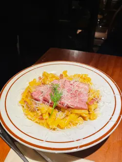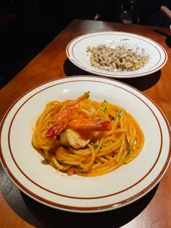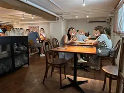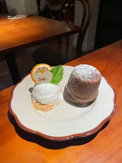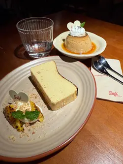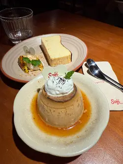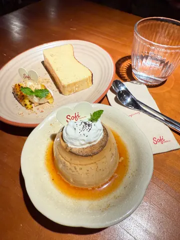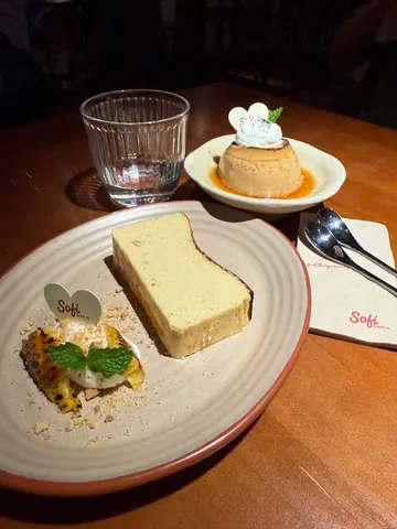 假日約了友人食Lunch嘆下啡,想起Sofi,之前都想去但係就唔到時間,趁今日得閒去下,因為算係早去,去到即有位。餐廳有兩層,下層面積比較細座位比較少,似係嘆啡多,上層就面積較大,樓底矮,座位較多用餐之地,以木系為主調,暖色的燈光感覺Relax。假日冇Lunch,同時又冇左想食的意粉..只好揀其他。泡泡黑咖啡,$40,以檸檬乾點綴,賣相有著清新之感,入口順滑清爽,咖啡味醇厚少許苦澀,配合綿密的奶泡,微微的奶香,增添了層次感。焦糖脆脆牛乳,$48,友人的。開心果白玉燕麥奶,$57,友人的。自家製蘇菲炸雞翼,$58,口感香脆惹味,雞肉滑又多汁。泡菜芝士卡邦尼煙斗粉,$138,煙斗粉口感煙靭有嚼勁,有泡菜味但唔算好濃,芝士唔算好多,味道正常。黑松露蘑菇捲捲麵,$158,之前大熱的捲捲麵,口感煙韌又豐富,黑松露蘑菇味道偏淡,味道普通。開心果巴斯克蛋糕,$68,口感軟滑,開心果味恰到好處,感覺較輕盈。食物味道正常,服務態度有禮,Relax之感。…查看更多